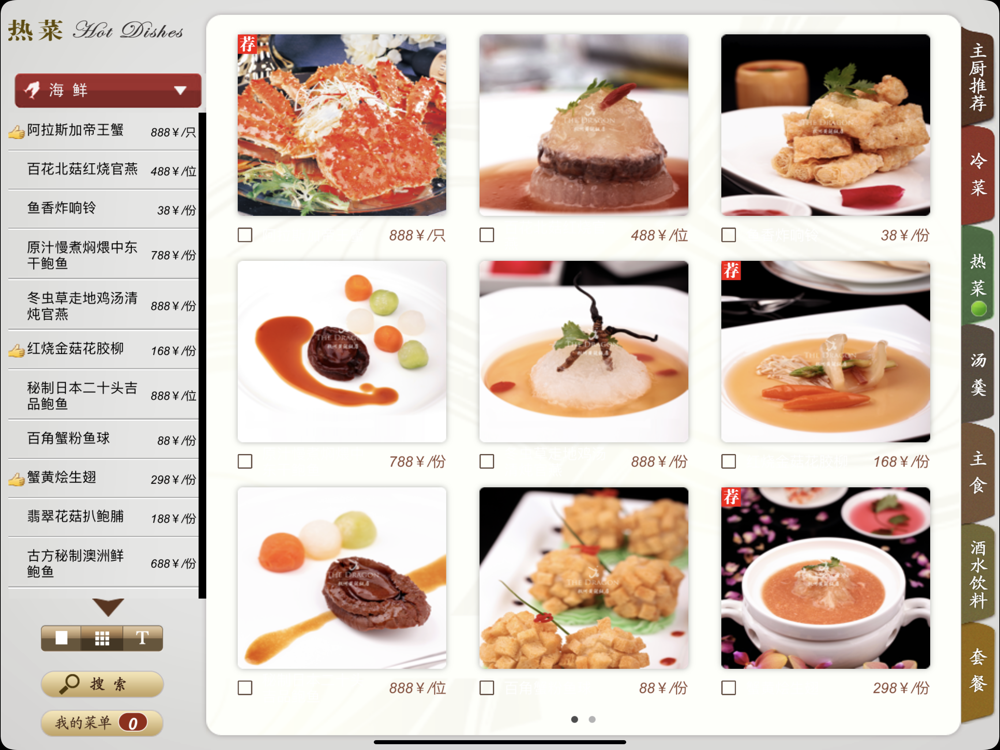 餐厅替代传统菜单的电子菜单,可以灵活的管理和使用。有餐厅广告、时价菜、推荐菜等特殊选项,给客人直接使用。