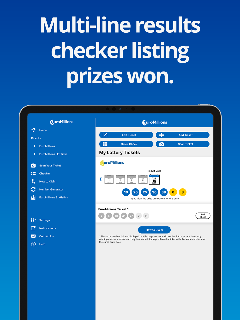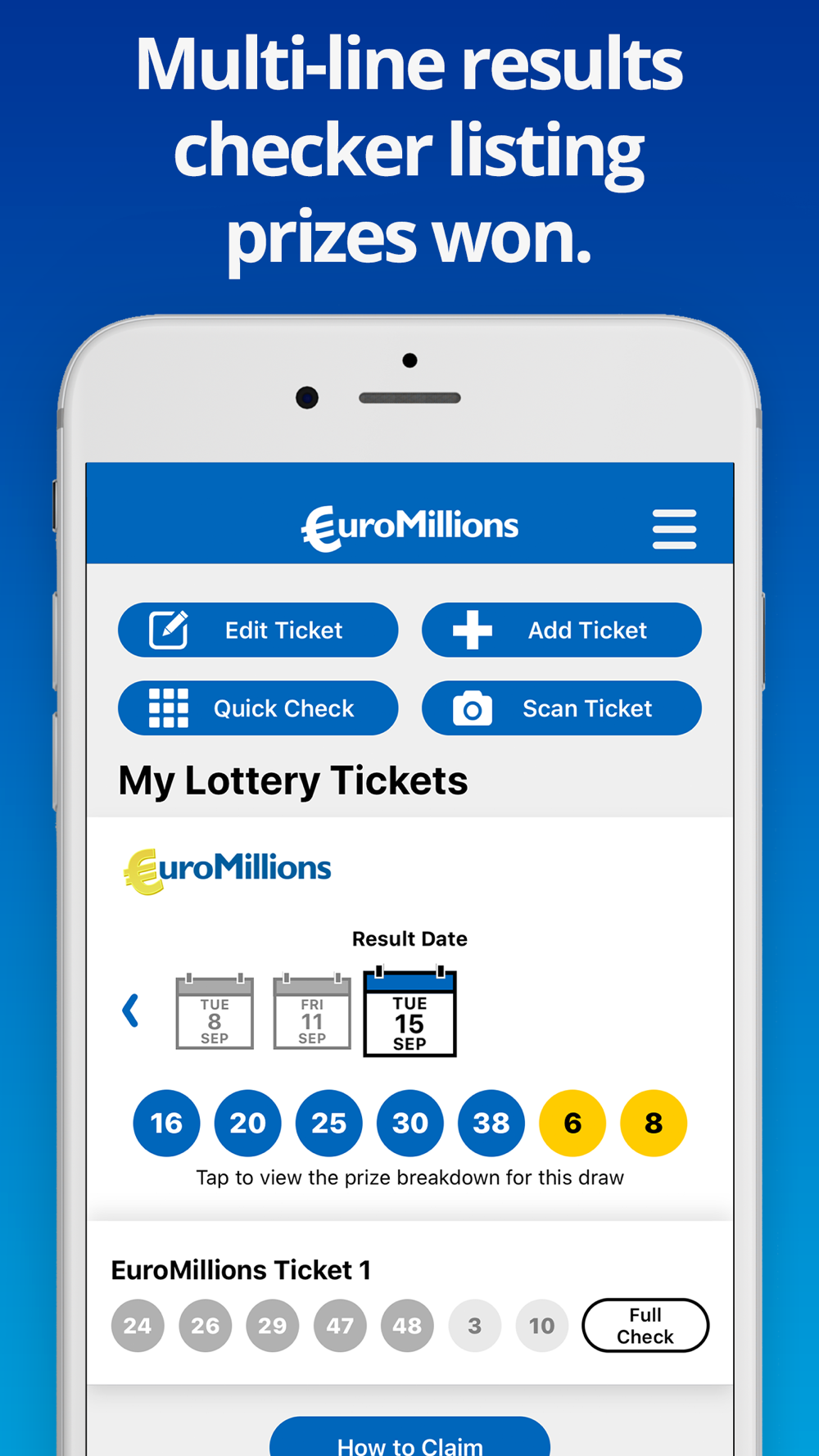 Enter and save your chosen numbers to see if you have won or to see how often they have come up in the past. You can also label your tickets – great if you play multiple lines or if you run a syndicate. The ticket checker also highlights prizes won on each ticket. Only play EuroMillions on certain days of the week? Not a problem, you can exclude your checked tickets from draws you do not play.
