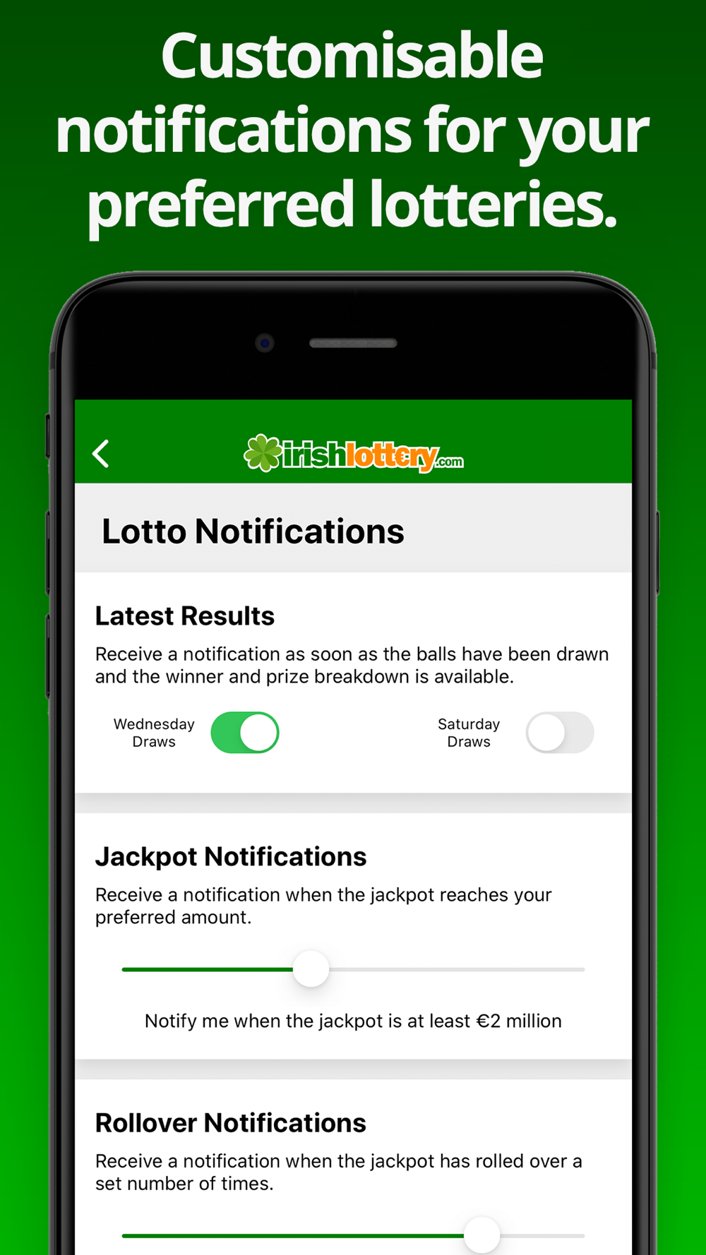Get notified instantly when the latest lottery results and prize breakdowns become available. The App allows you to customise notifications for specific lottery games and you can also choose which days of the week you play. Want to know when the jackpot has rolled over or has reached a certain amount? Just head to the Notification section of the app to set up your alerts. There is also the option to set notifications at times that suit you - great for reminding you to purchase tickets before the draw.