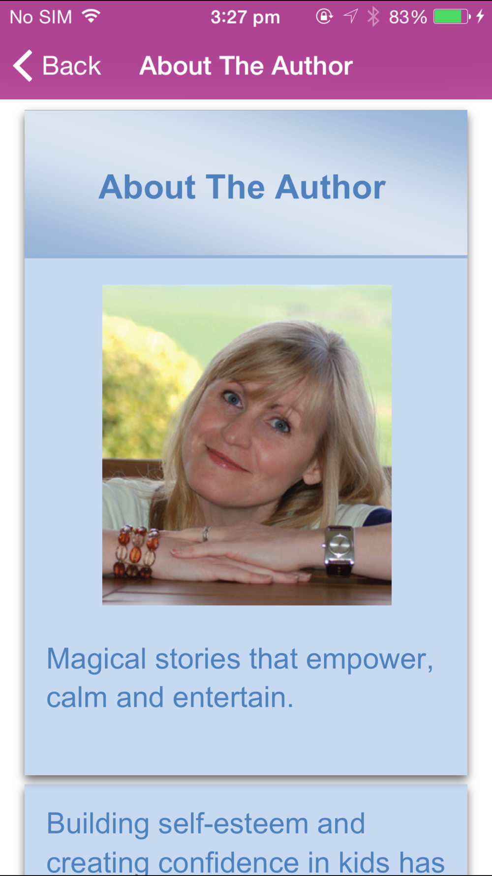 Heather Bestel is an experienced psychotherapist who specialises in helping children. Her work began in the early 90's and she has helped many children in the area of dealing with anxiety and stress and building self-esteem and confidence. “Magical Me” is one of a range of titles from the “Magical Meditations 4 Kids”.