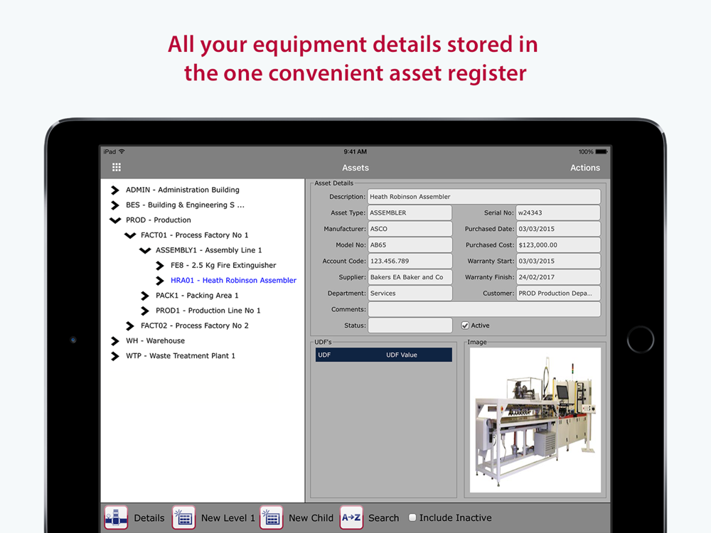 • Assets Register - One central location to store all your asset information including: details, work orders, history, asset audits. Use the iOS App to issue parts to a work order, view create and edit assets in the field.