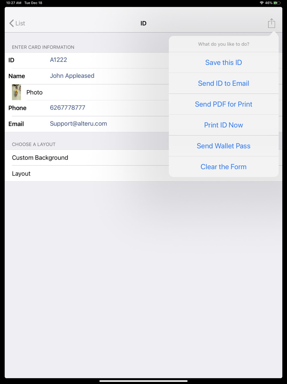 - Create and Print ID card directly from iOS devices.