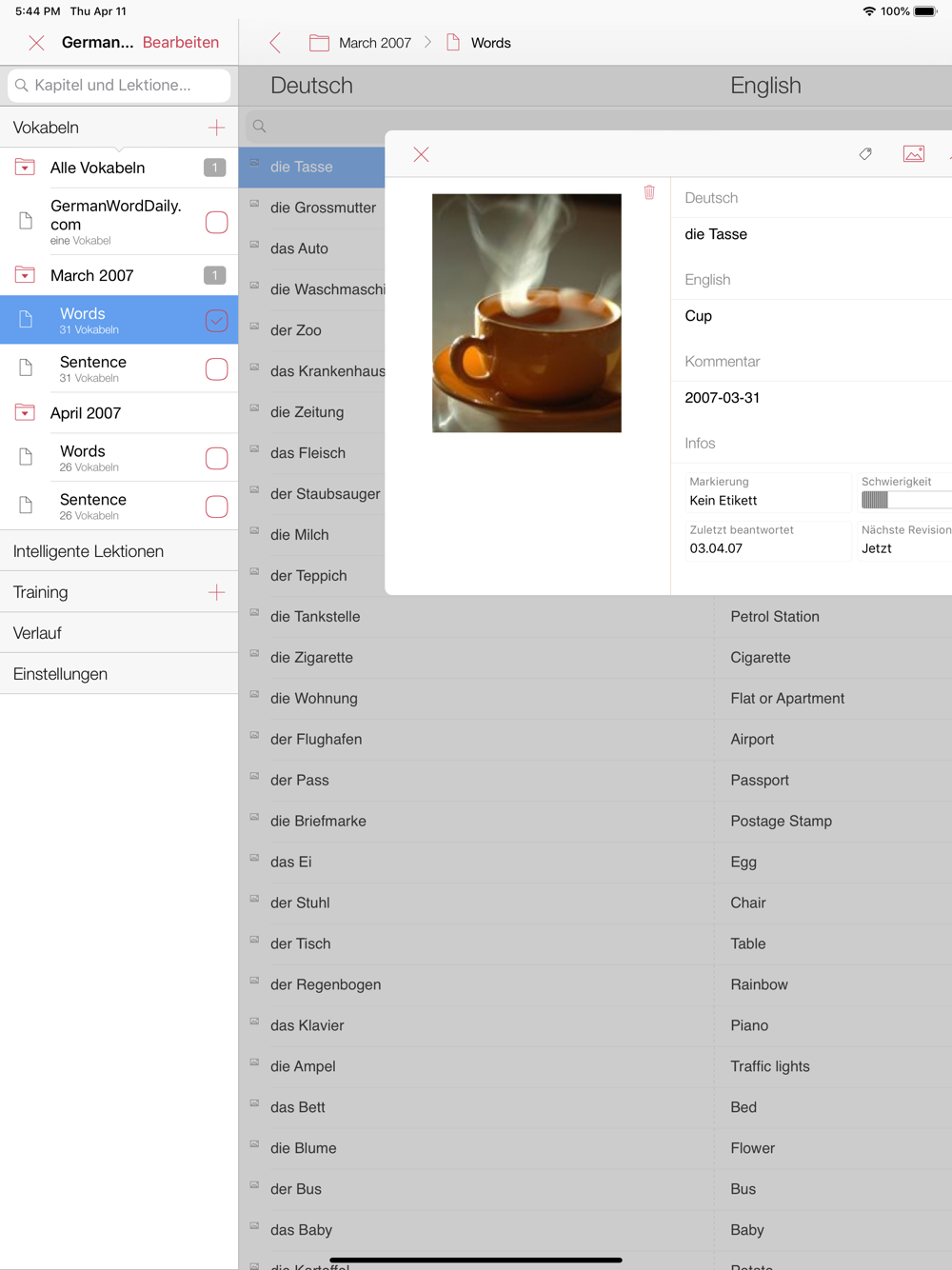 For every single term, iVocabulary determines a grade mark and automatically calculates the next date to learn this term. This way iVocabulary will always present your vocabulary at the right time to ensure the highest level of learning success.
