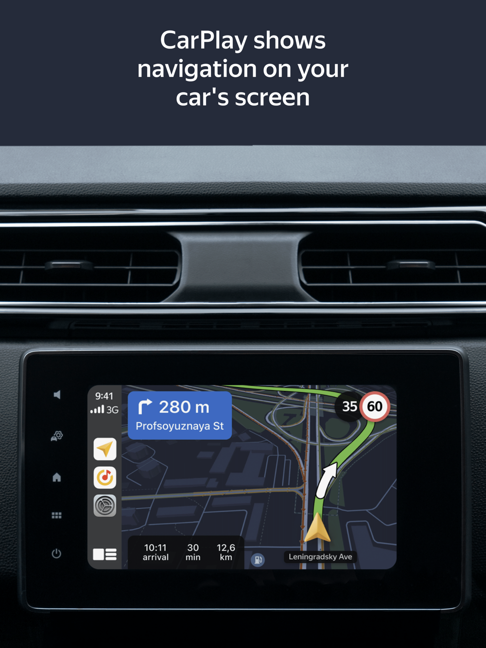Yandex Navigator is available for CarPlay, making it easy to follow your route on the screen in front of you without getting distracted by your phone. To make that work, you'll need a Yandex Plus subscription.