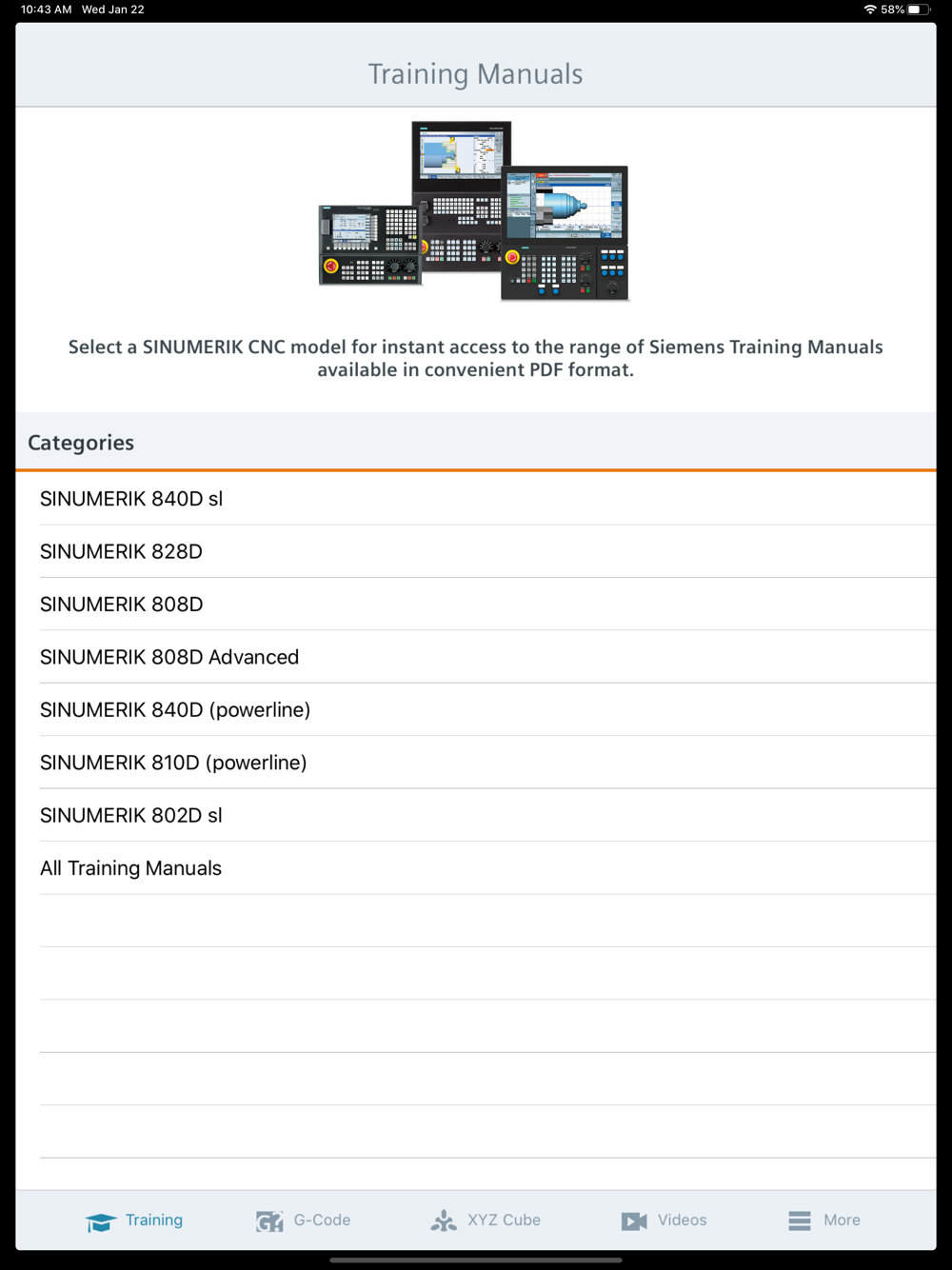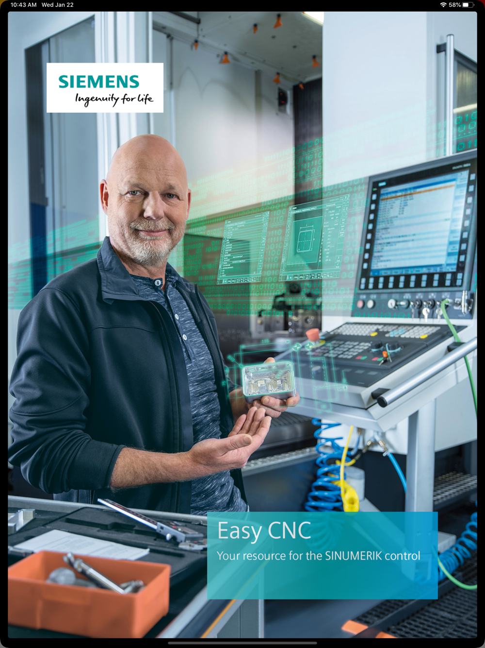 Completely refreshed for iPad and iPhone, our most popular app makes learning SINUMERIK CNC even easier. Easy CNC contains all the latest SINUMERIK training manuals and will ensure you always have the most current updates. No heavy manuals to carry, gain instant to over 5000 pages of vital CNC training lessons and content in PDF format. PDF reader features annotations and bookmarking capabilities. Updated G-Code tool lets you quickly find compatible codes for Siemens and ISO G-Codes. Newly added video library shows you why “with SINUMERIK CNC, anything is possible”. Includes glossary reference guide to CNC terminology, web links to CNC social media and our online user community.