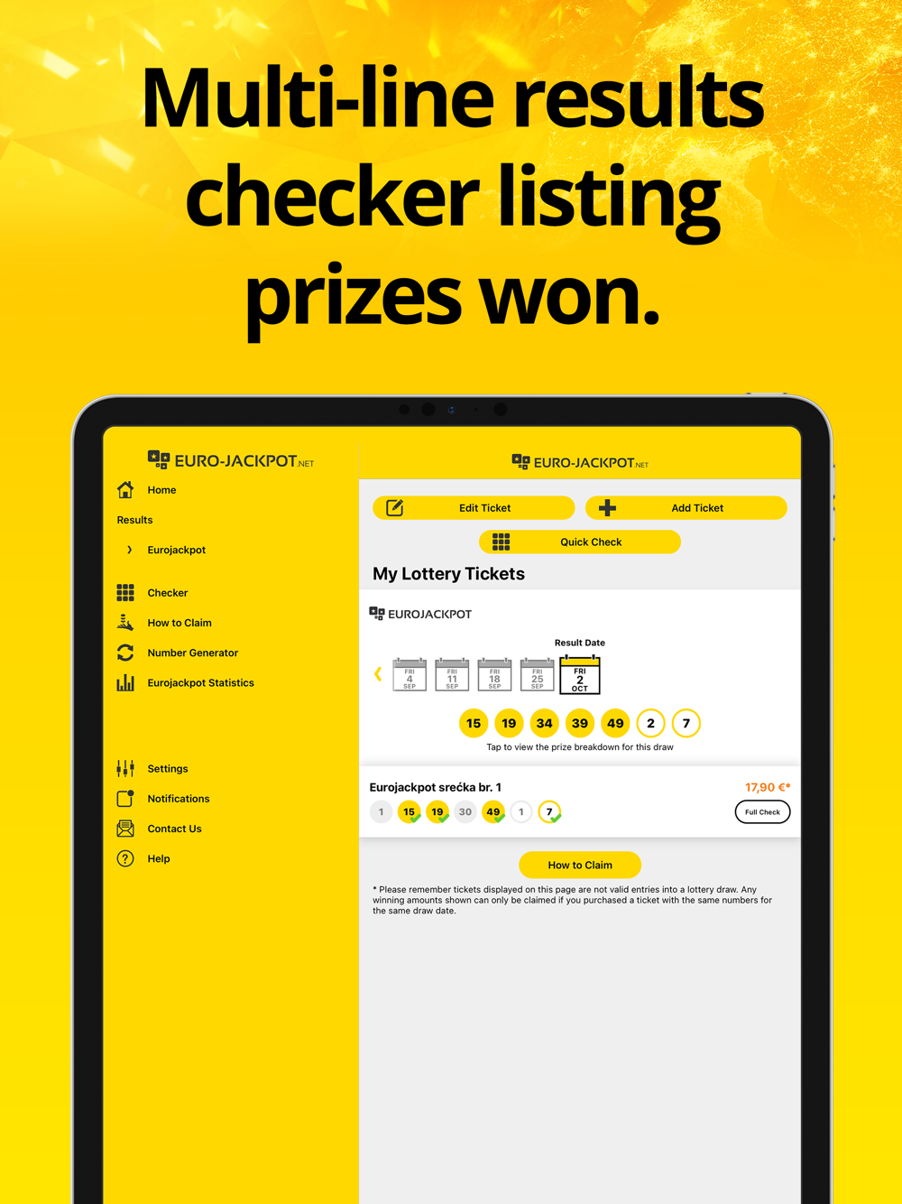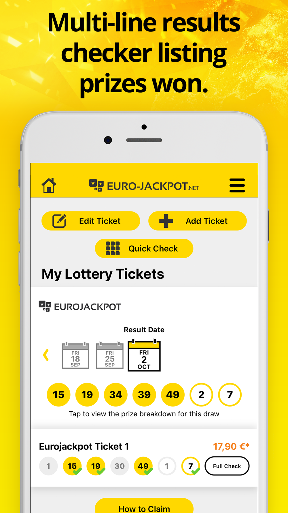 Enter and save your chosen numbers to see if you have won or to see how often they have come up in the past. You can also label your tickets – great if you play multiple lines or if you run a syndicate. The ticket checker also highlights prizes won on each ticket.