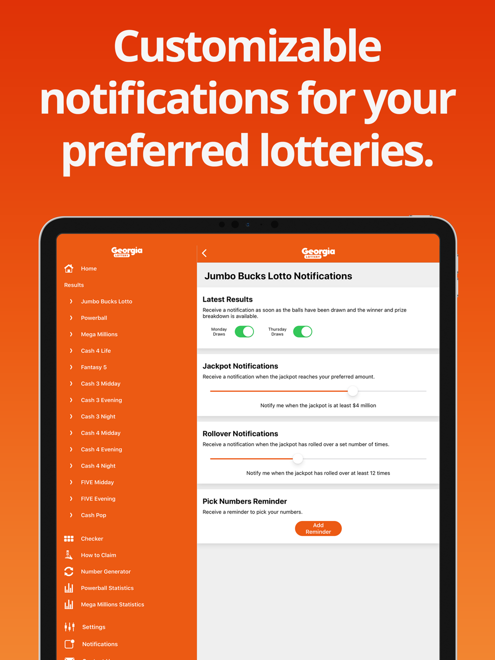 Customise which lotteries display in the app and in which order.