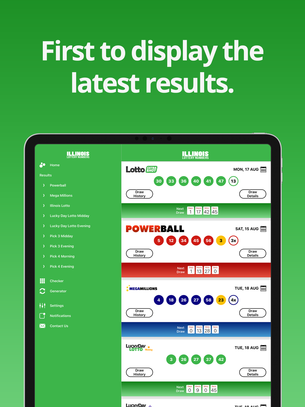 Get the latest Illinois lottery results within minutes of the draws taking place. This easy-to-use app includes the following lotteries: