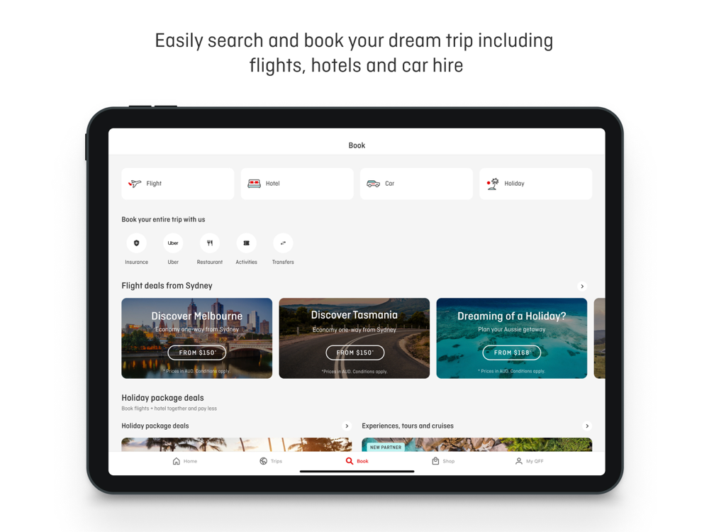 • Explore all Qantas products including hotels, cars, tours and travel insurance