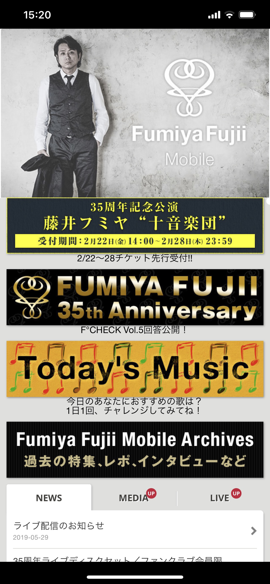 This is the official application of "Fumiya Fujii Mobile", which is the official mobile & smartphone site of Fumiya Fujii.