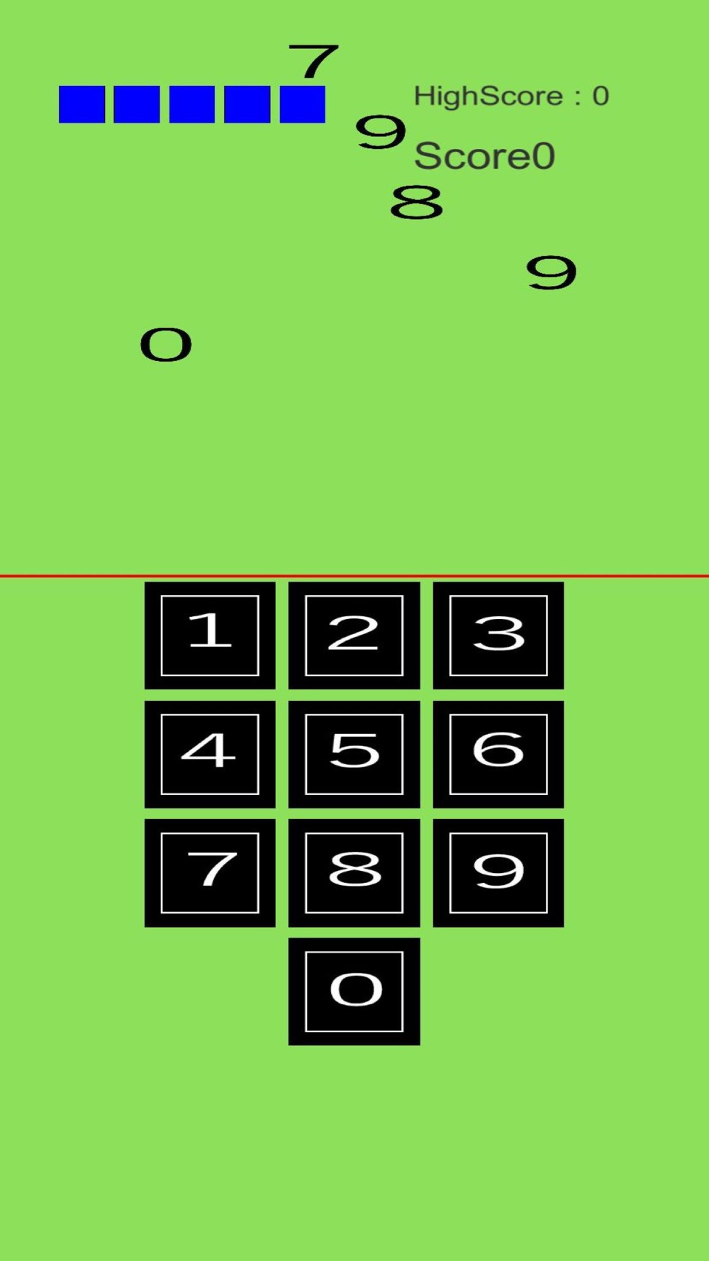画面の上から落ちてくる数字をテンキーで入力して撃ち落とす簡単ゲーム!