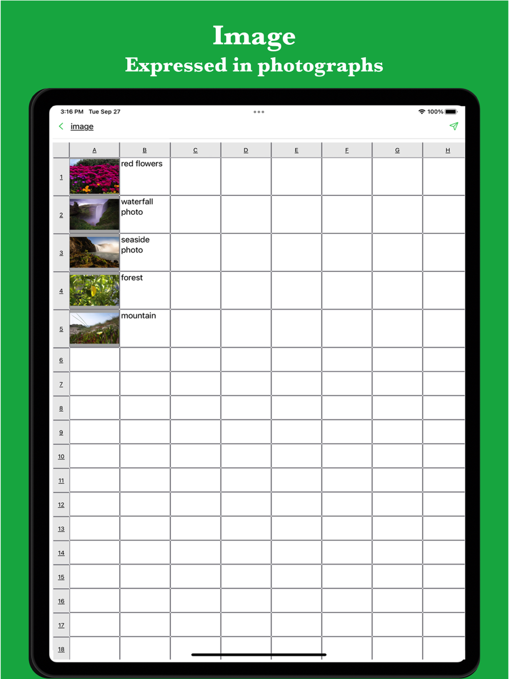 This Simple Table App allows you to easily take notes in a table format like Excel.
