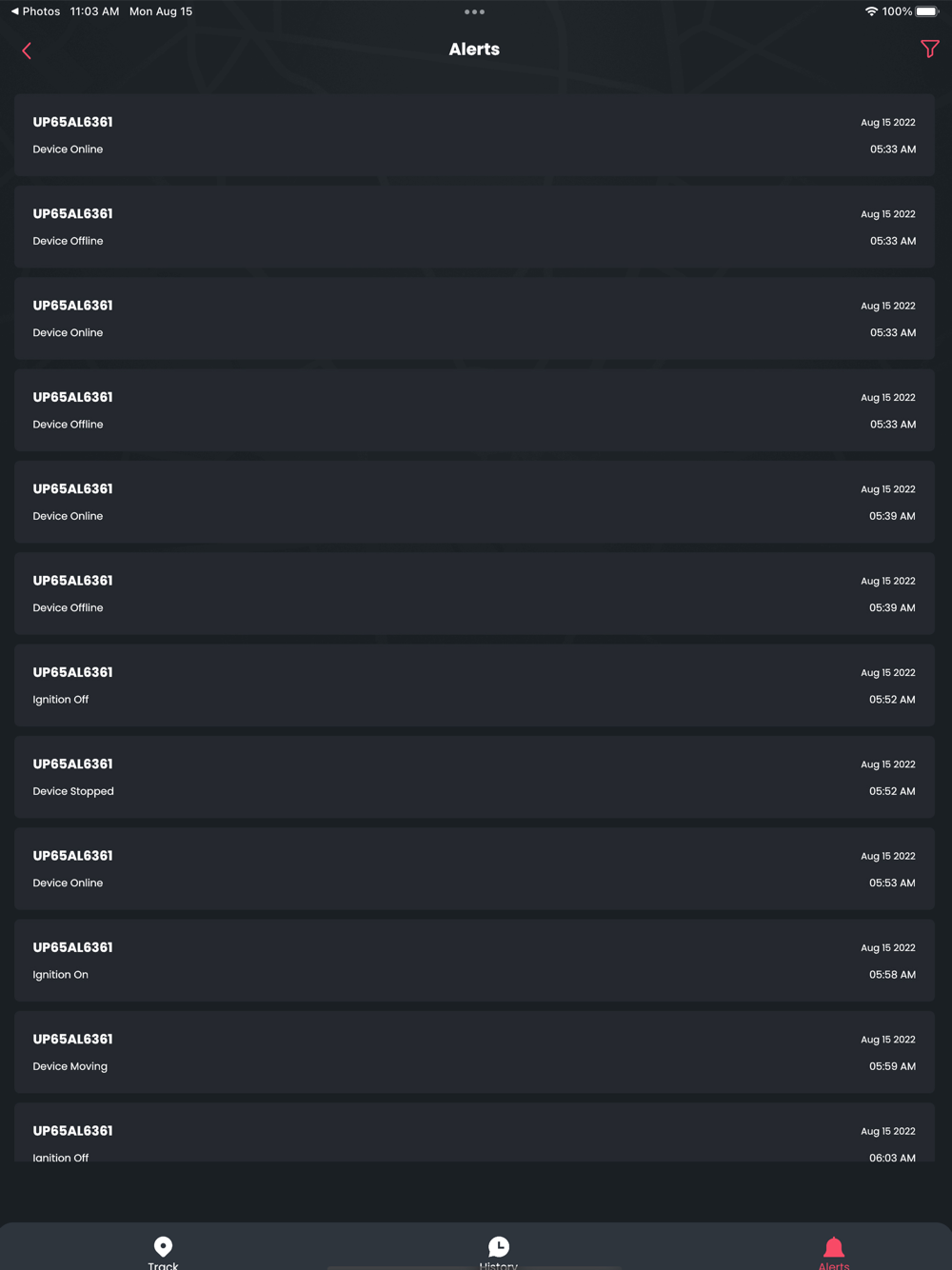 history Tracking of two months