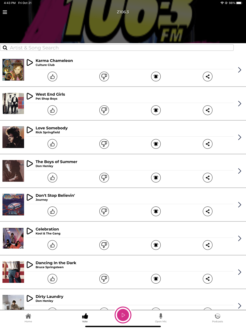 Z106.3 All 80's All the Time is the home of Bob & Sherri Weekday Mornings, Rick Dees in the Afternoon, Nina Blackwood's Absolute 80's on Saturdays and more!