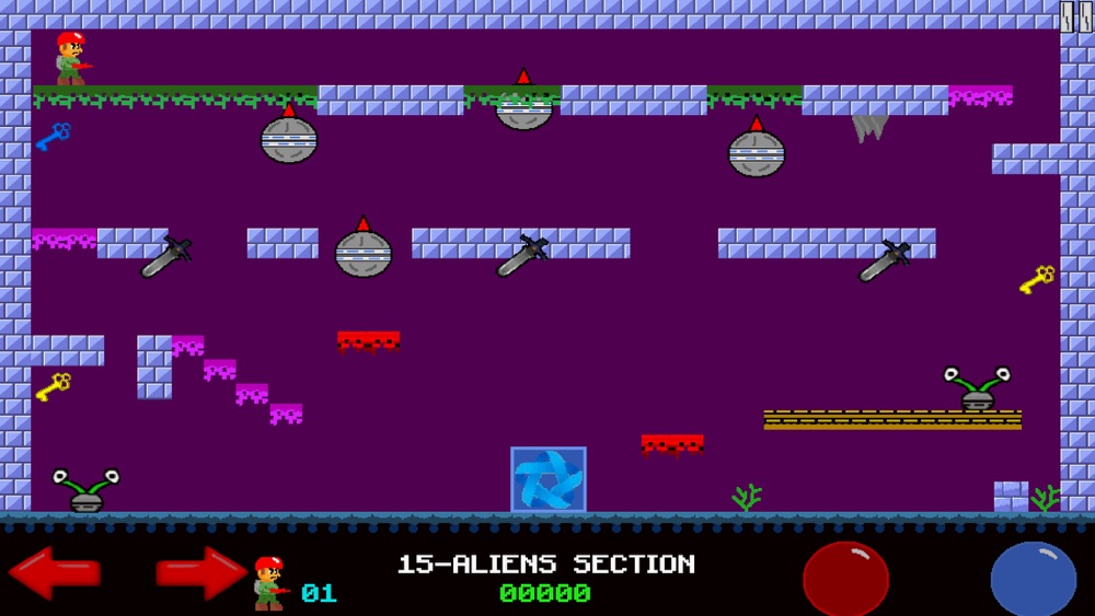 this game integrates platform and shooting games in one.Use your armor and weapon to destroy all you see.