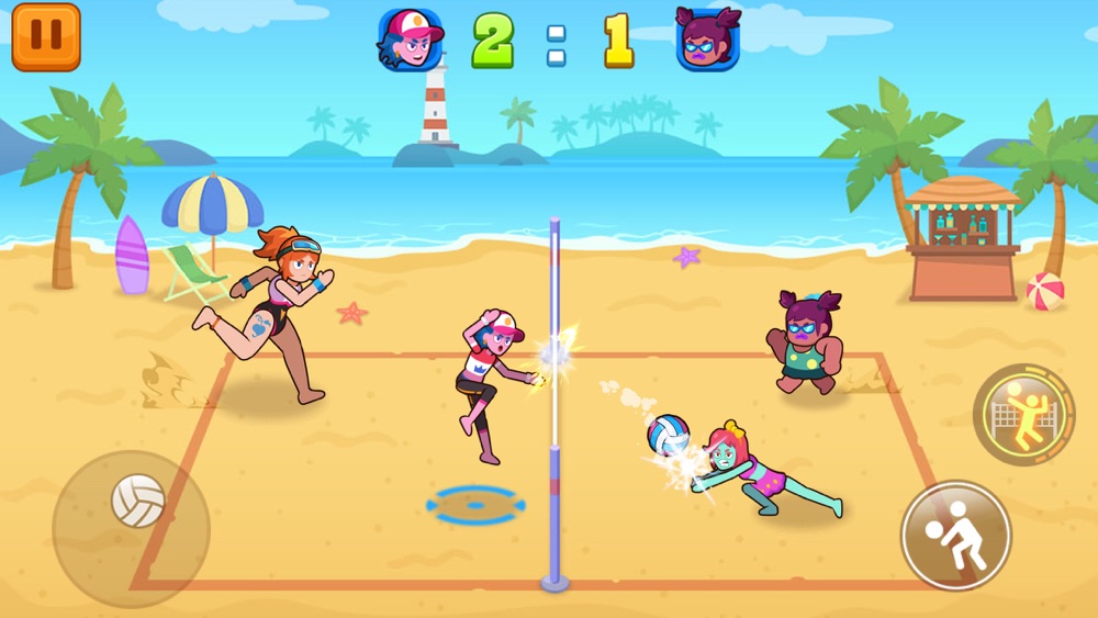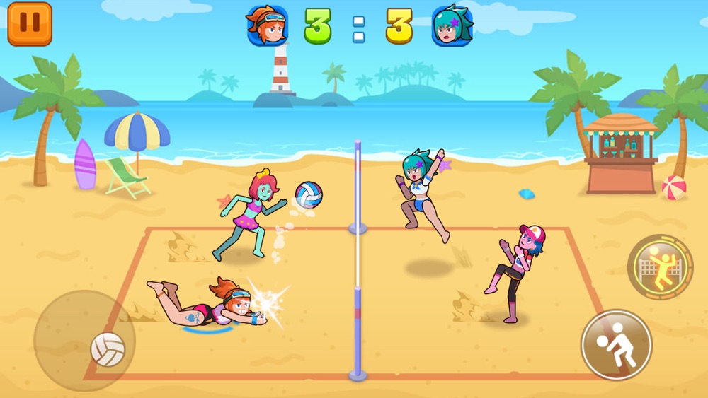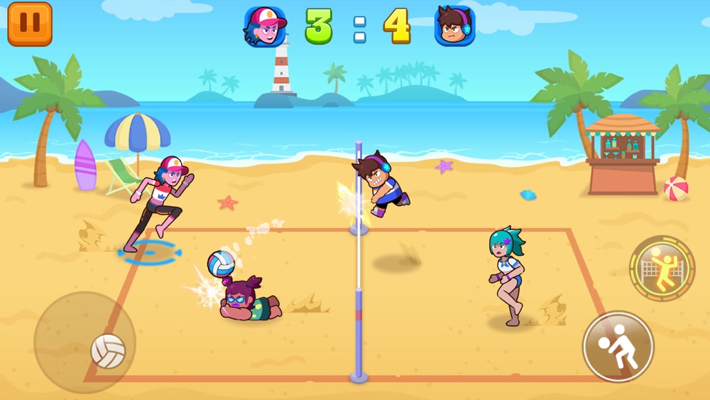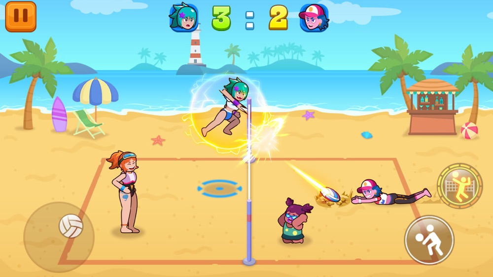 1. Slide your finger to control the direction of the character, and click to play volleyball appropriately.