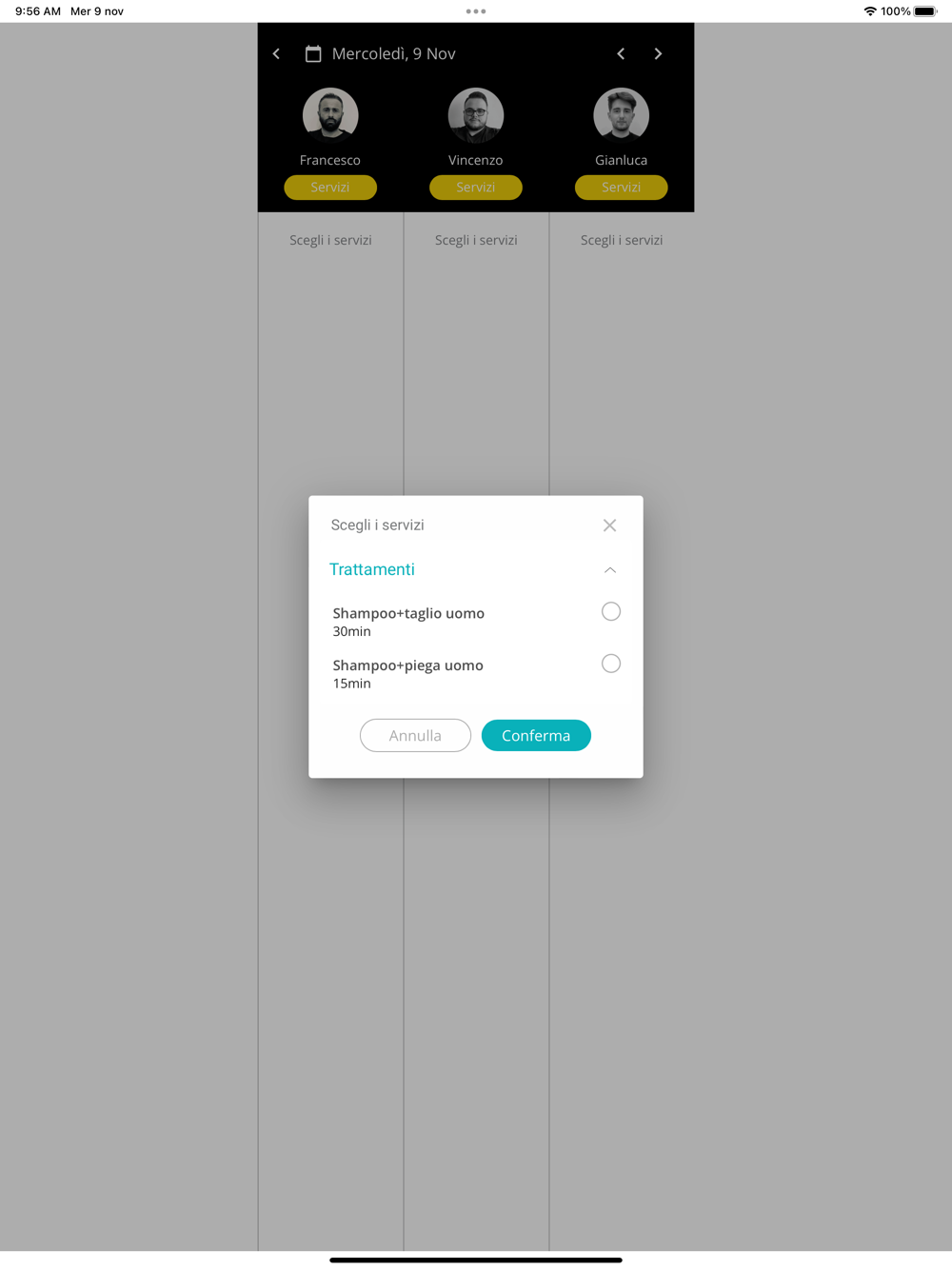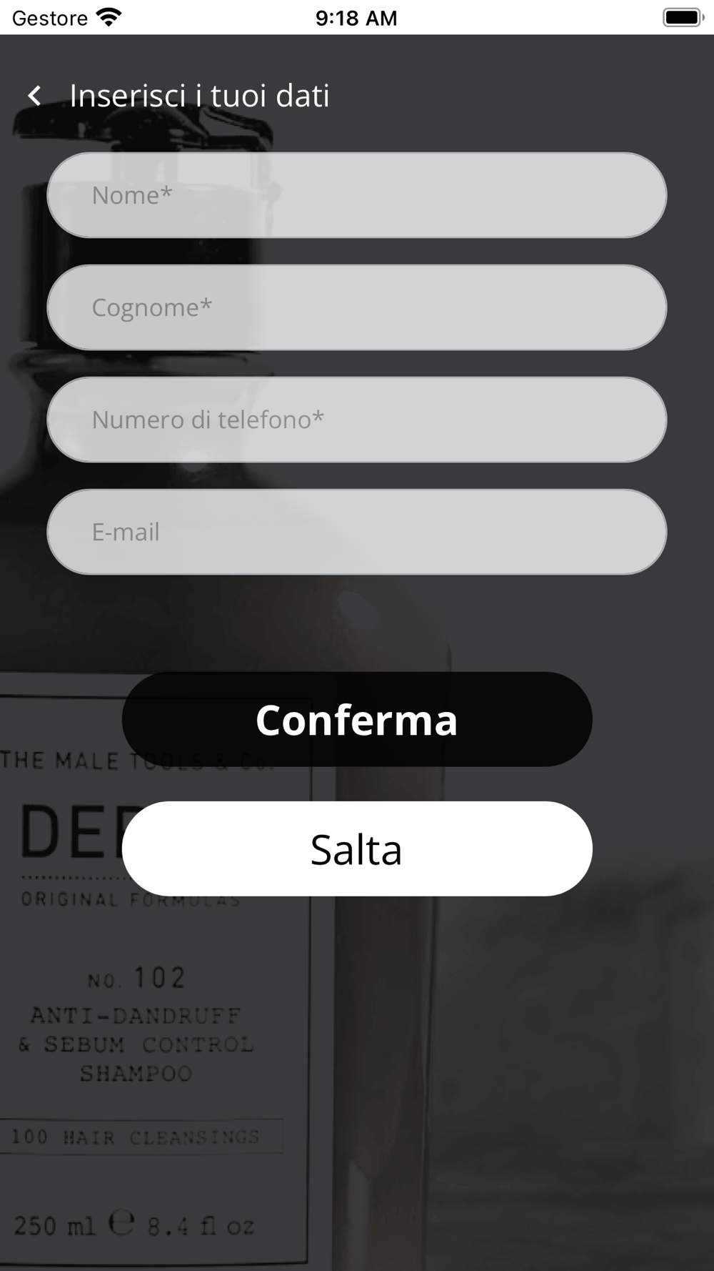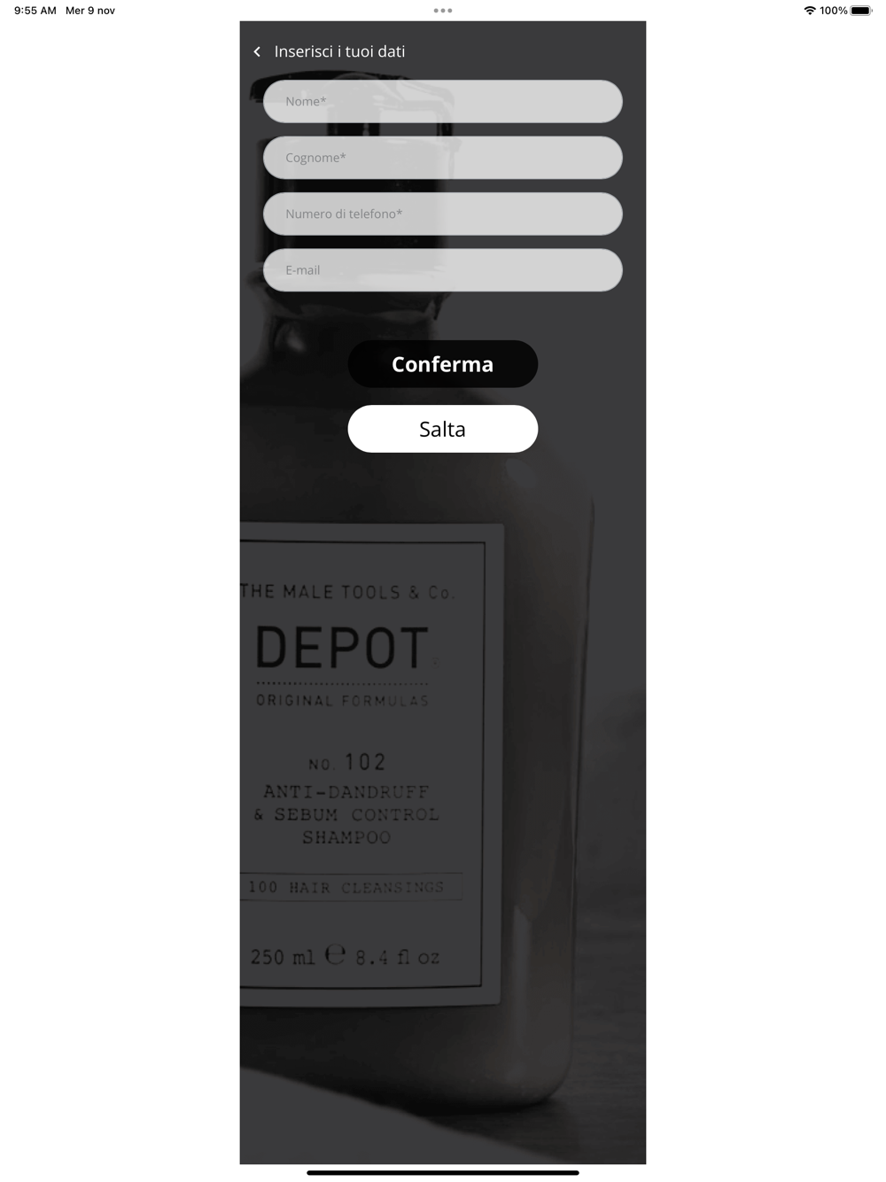 Inserisci i tuoi dati, scegli i trattamenti di cui hai bisogno e prenota con il tuo operatore preferito.