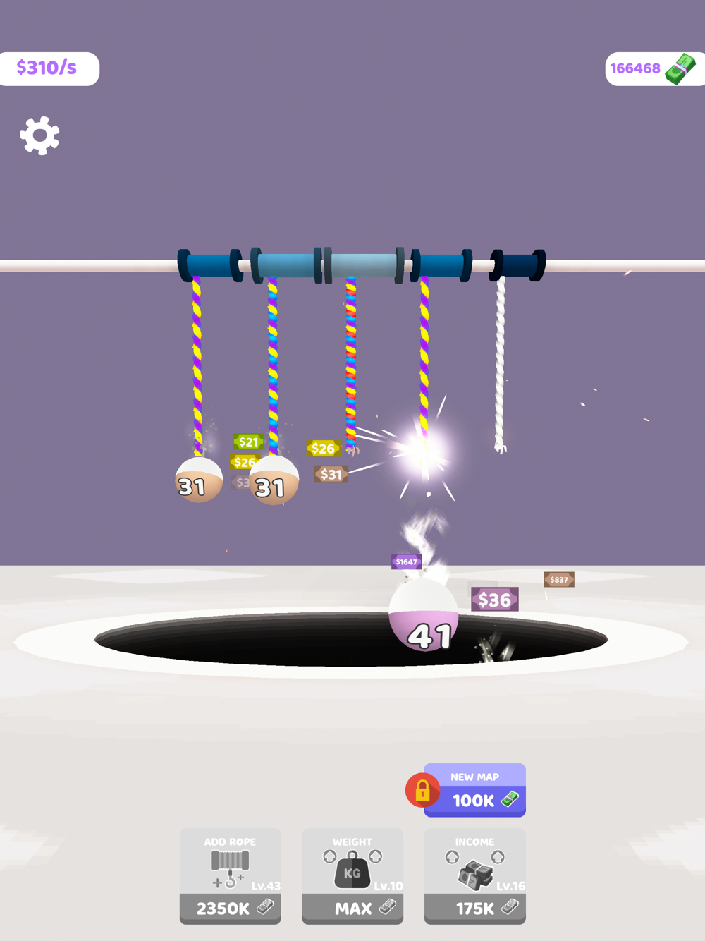 Balls are getting heavier! Break all the ropes to earn money! Do not forget to spend money to incrementals! Ropes are getting stronger and stronger! Tap tap to break them faster!