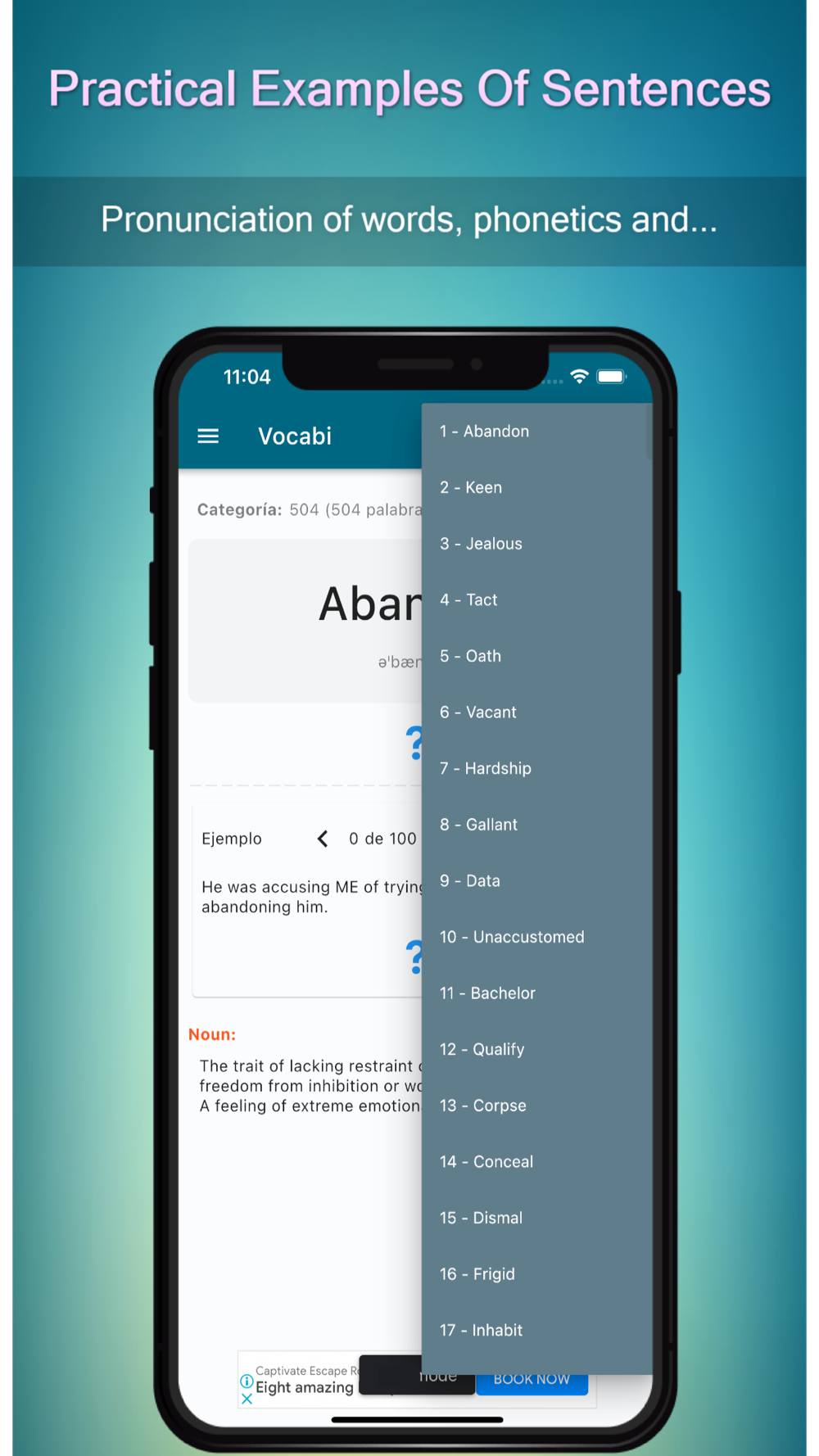 One of the features that makes this application superior to other English language learning applications is correct pronunciation and proper phonetics. Also, with this application, you can practice the pronunciation of words easily and accurately. In this application, sample sentences are presented in which new vocabulary is used in each sentence so that you learn new vocabulary more easily.