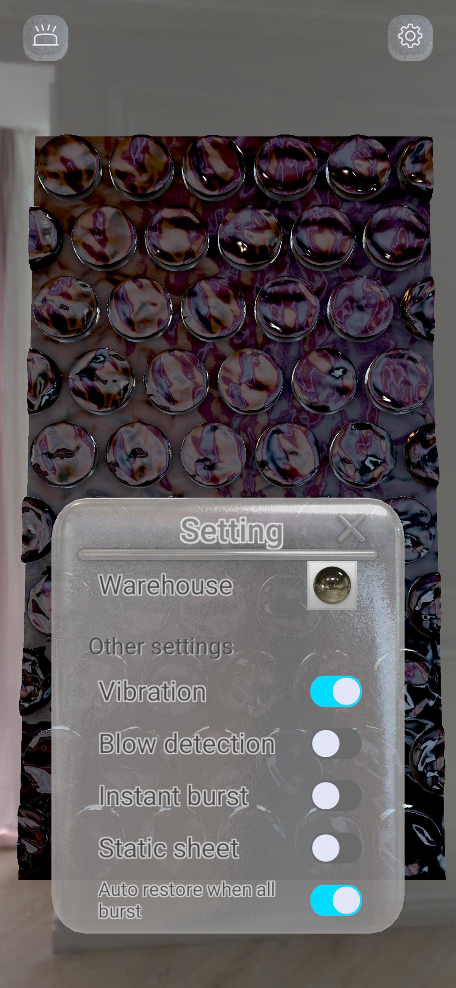 · Blow detection: Bubble wrap can swing when you blow air towards the phone. This cannot be enabled with vibration.