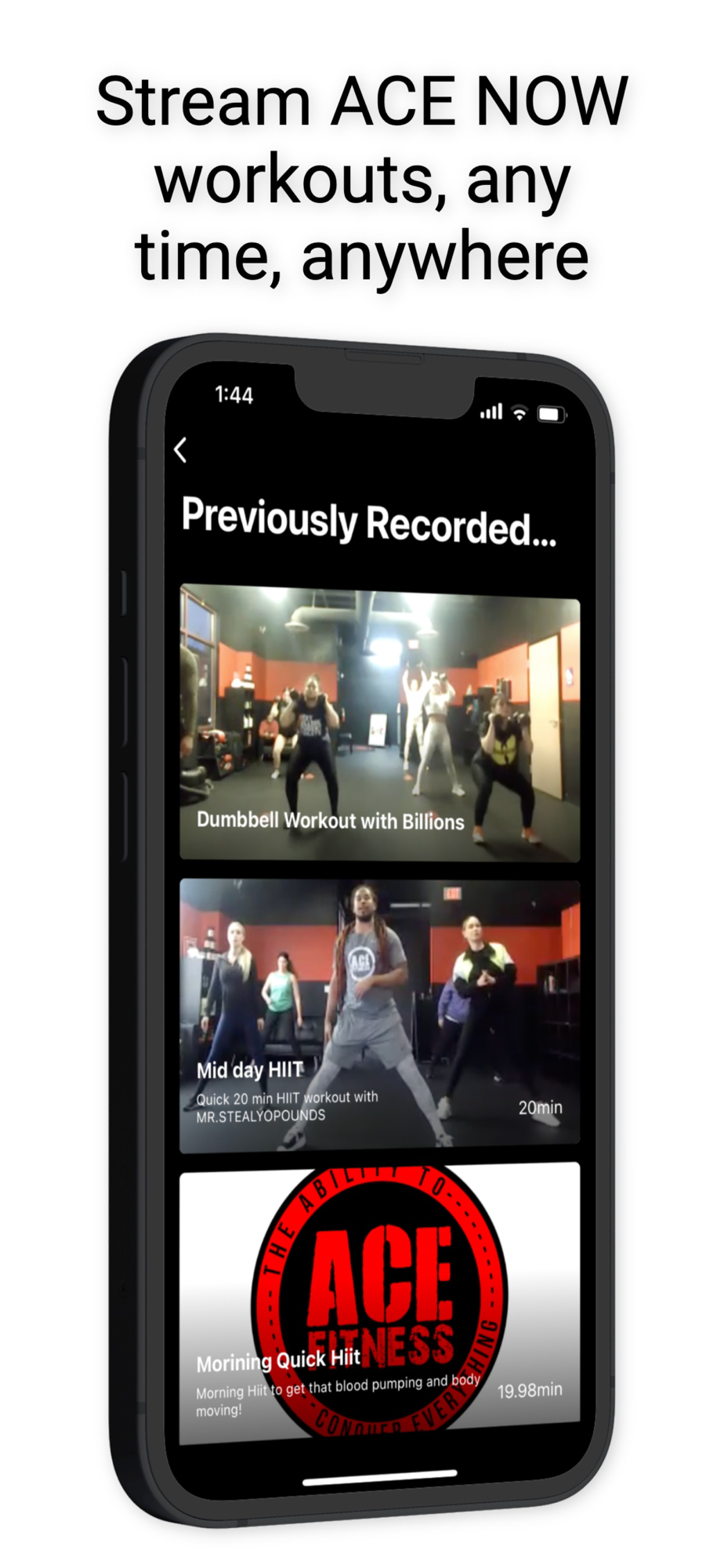 ACE NOW is a platform where you can instantly stream ACE NOW workouts, any time, anywhere. You’ll also get additional program materials, nutritional guidance, and community support with each fitness and workout program. You’ll find something accessible to every fitness level and many programs do not require any equipment.