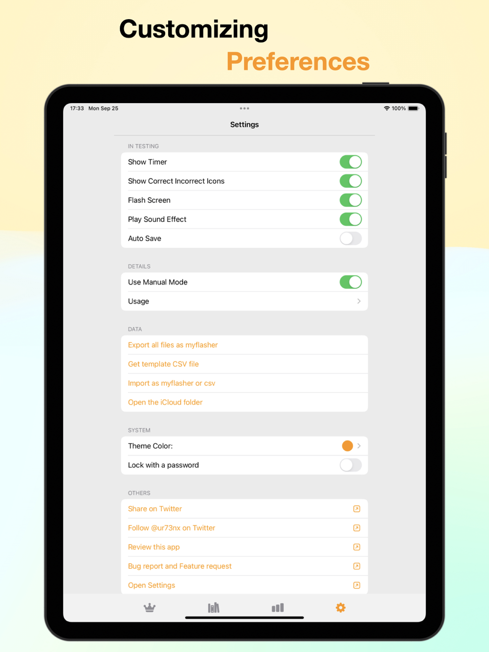 You can set the range and number of questions to be presented from your flashcards. You can also change the order and orientation of presentation.