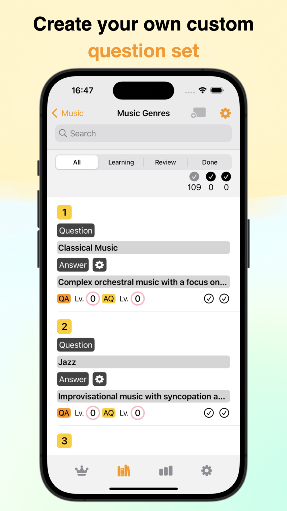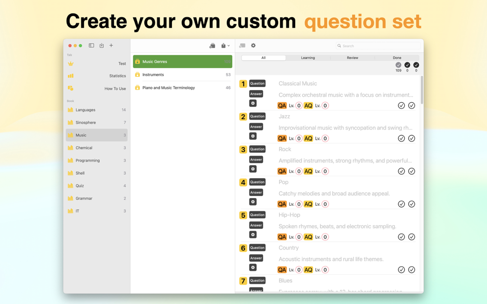 Create your own original question sets and efficiently study with a spaced repetition schedule tailored to the forgetting curve.