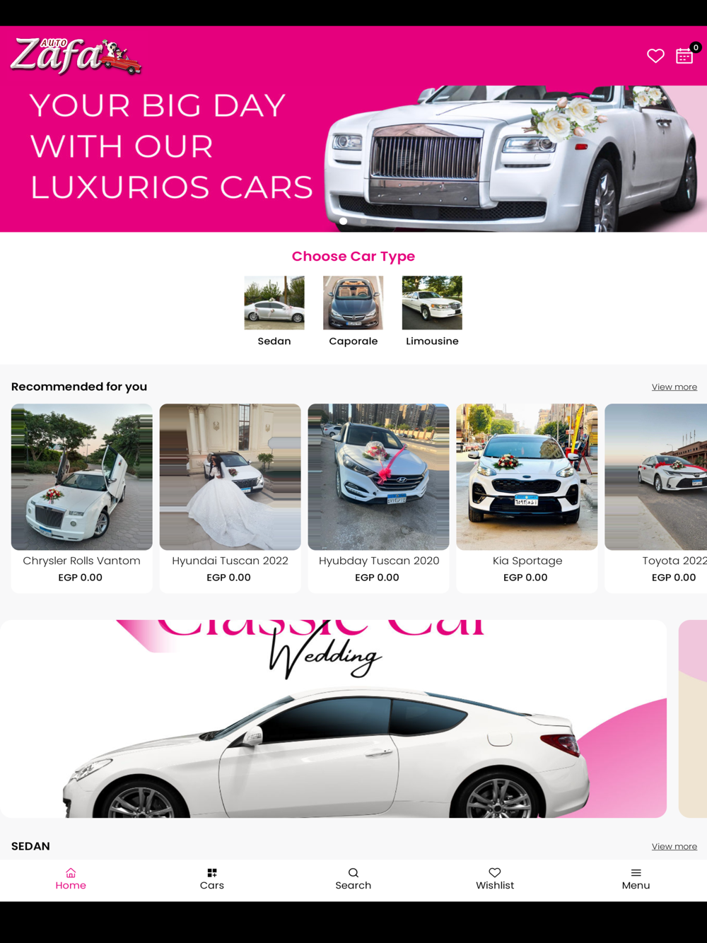 Complete your big day with one of our cars. Now you can rent your wedding car through our app easily.