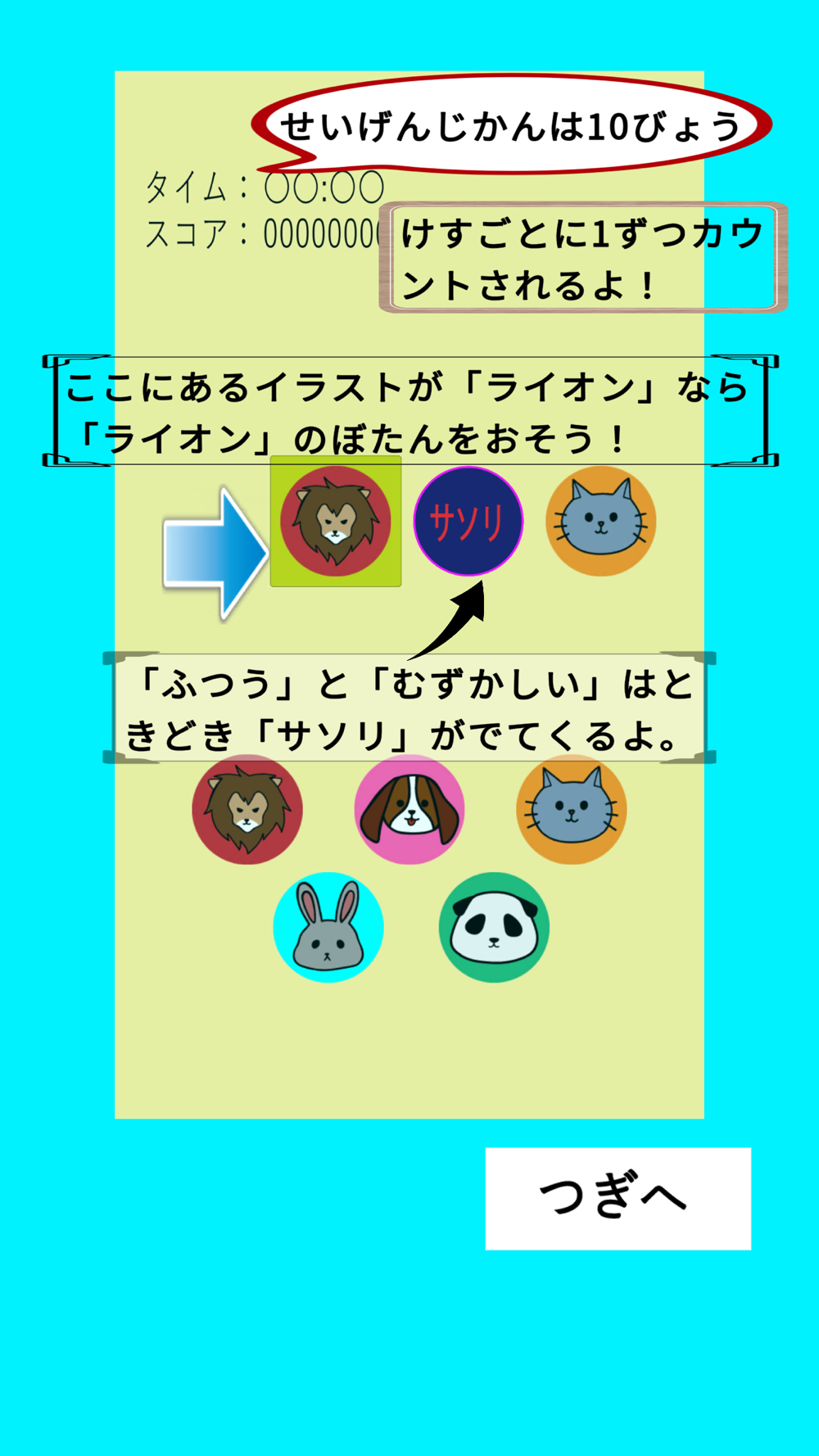 ※最初にふつう、むずかしいを選ぶと「サソリ」の消し方が出てきます。ルールを確認してね!