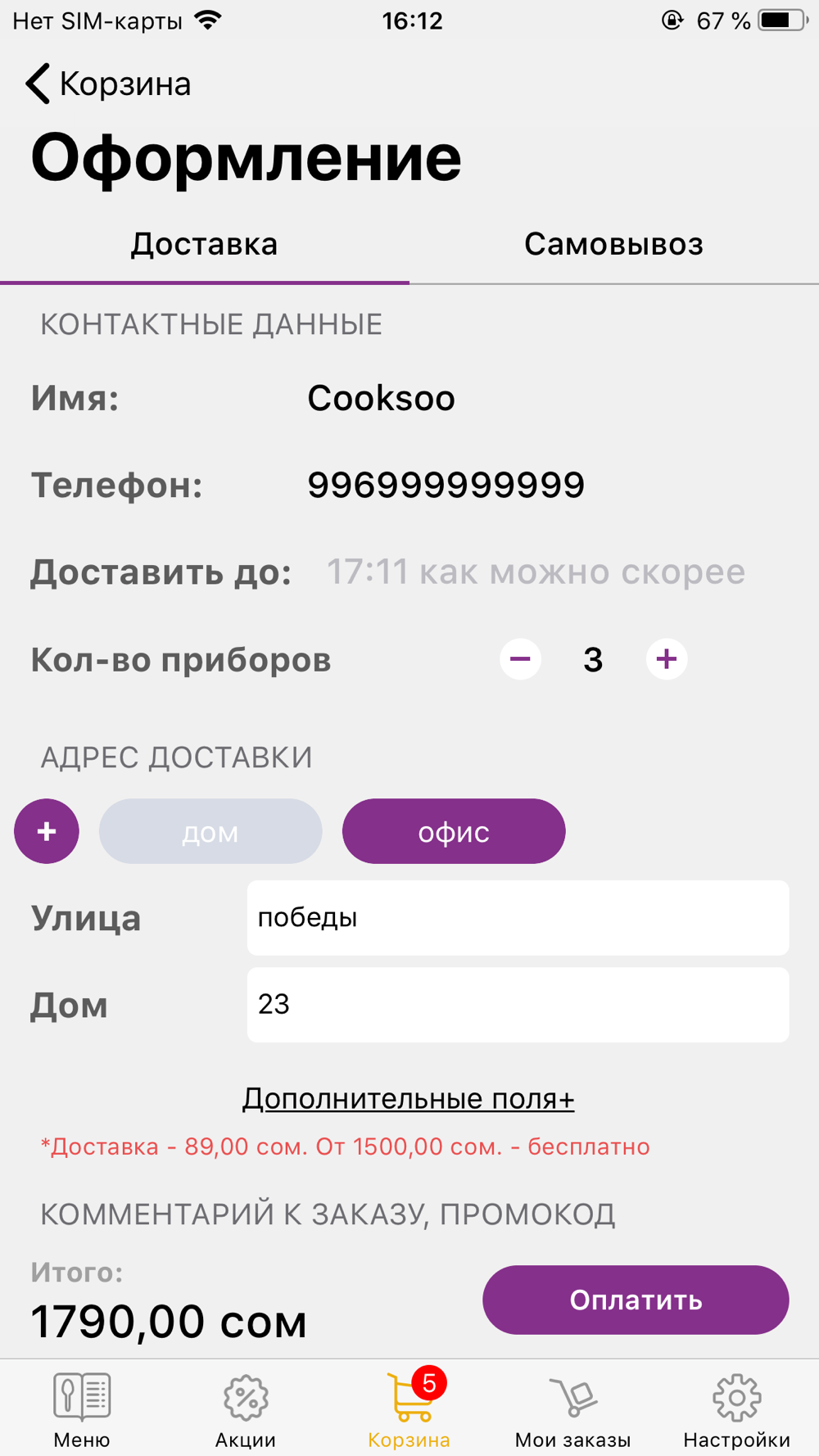- выбрать удобный для Вас способ оплаты (наличными, картой курьеру);
