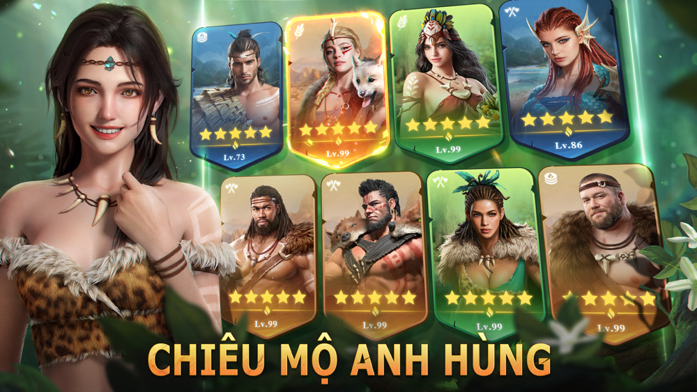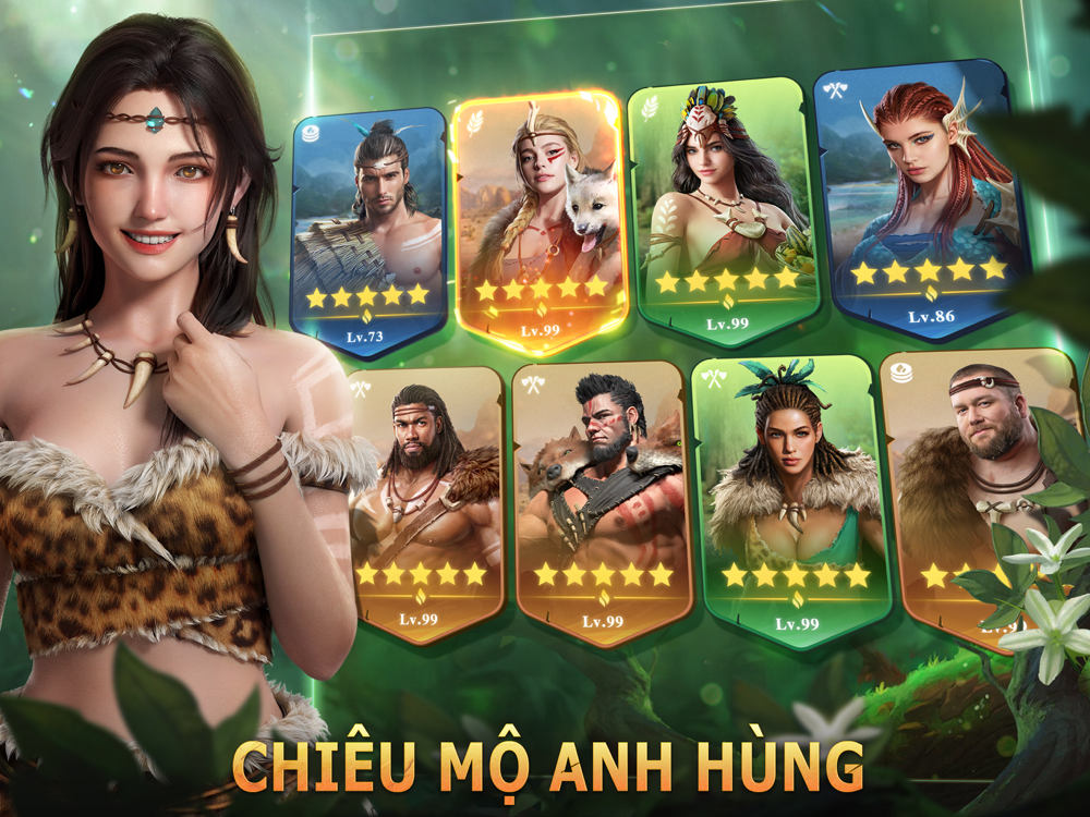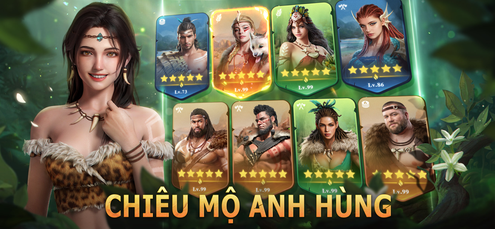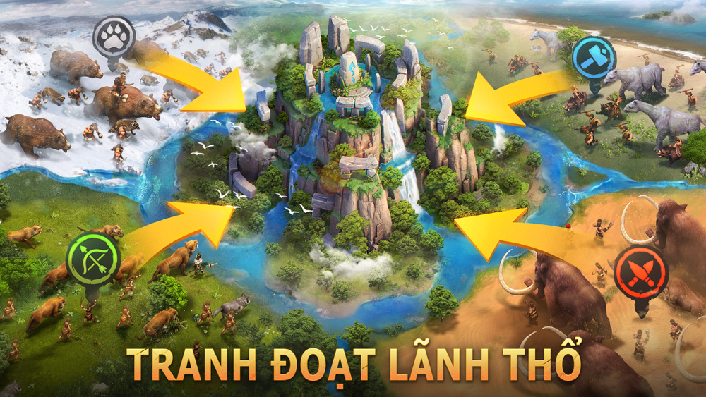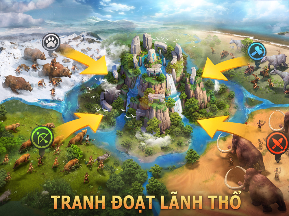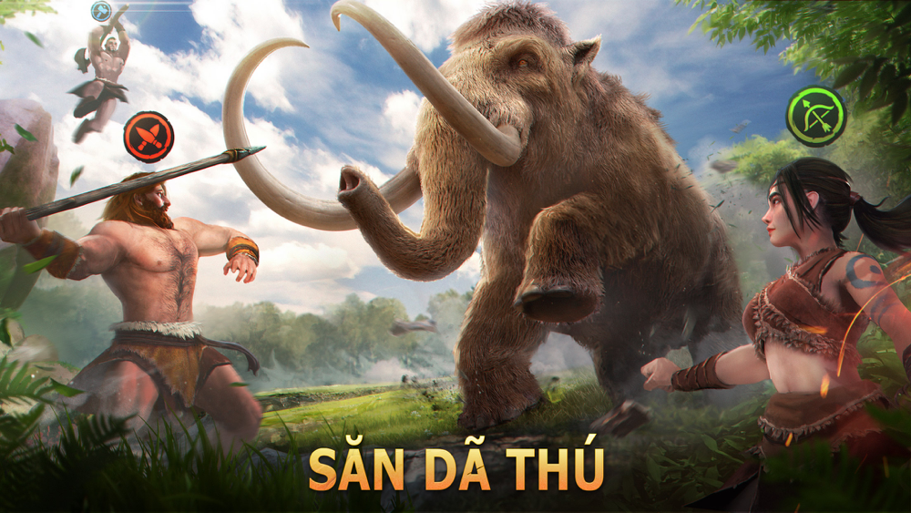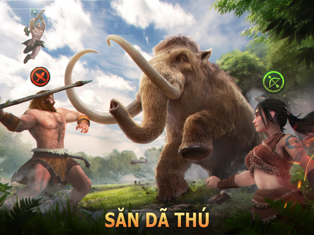 Trải qua quá trình luyện tập để chiến đấu và săn bắt dã thú. Bạn sẽ hợp tác với nhiều loại Anh Hùng khác nhau, bố trí thiên la địa võng, thuần hóa những dã thú khổng lồ thời tiền sử như Voi Ma Mút, Hổ Răng Kiếm,...