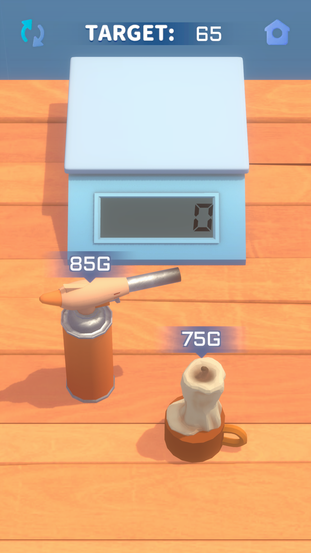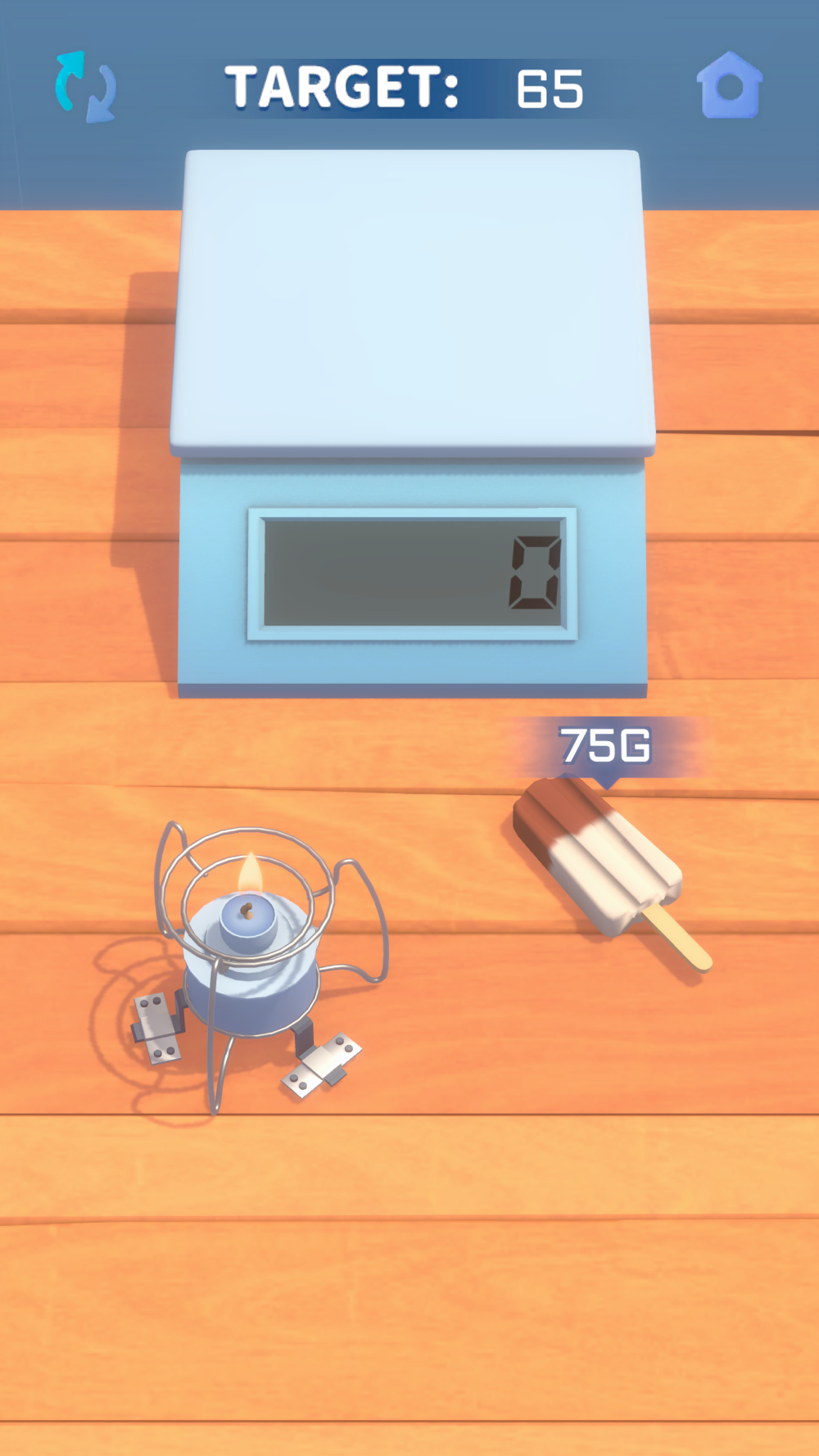 By constantly trying to combine props on the field and synthesizing different weights until reaching the target weight on the field, you can pass the level. If the weight on the scale exceeds the target weight, you will fail!