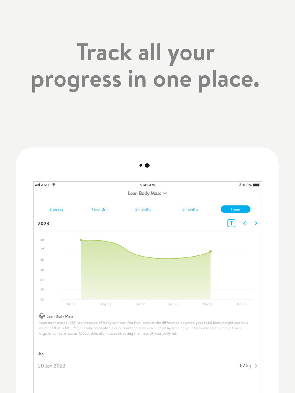 - Connect to other wearable devices and apps like the Apple Health App, Garmin, Fitbit, MyFitnessPal, and Withings devices to track workouts, sleep, nutrition, and body stats and composition