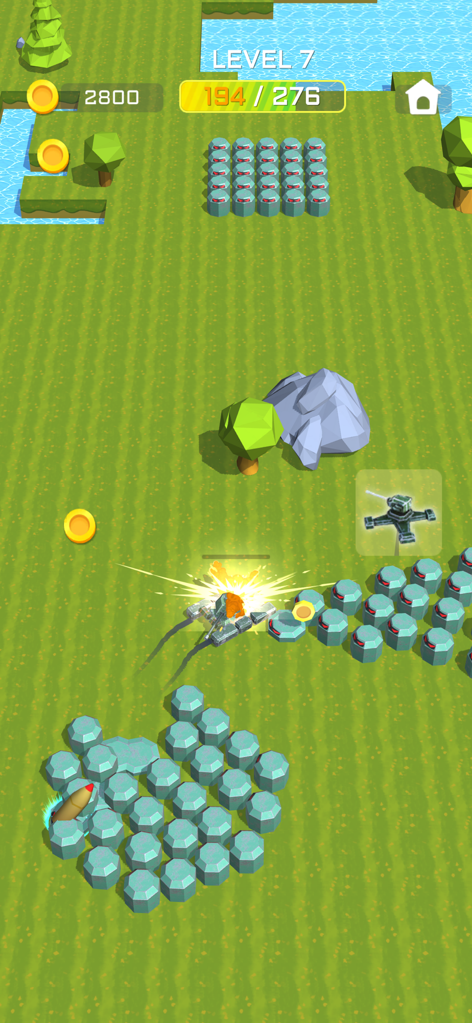 The player controls the chariot, shoots the enemy, and breaks through the encirclement. When destroying the enemy, various buffs and gold coins will be continuously dropped. Players can choose to eat the buff according to their own situation, so as to gain an advantage in the battle situation and even reverse the situation. situation. After the game is over, players can also use the gold coins they get to upgrade the level of their equipment, so as to gain more powerful vitality and continue to break through!