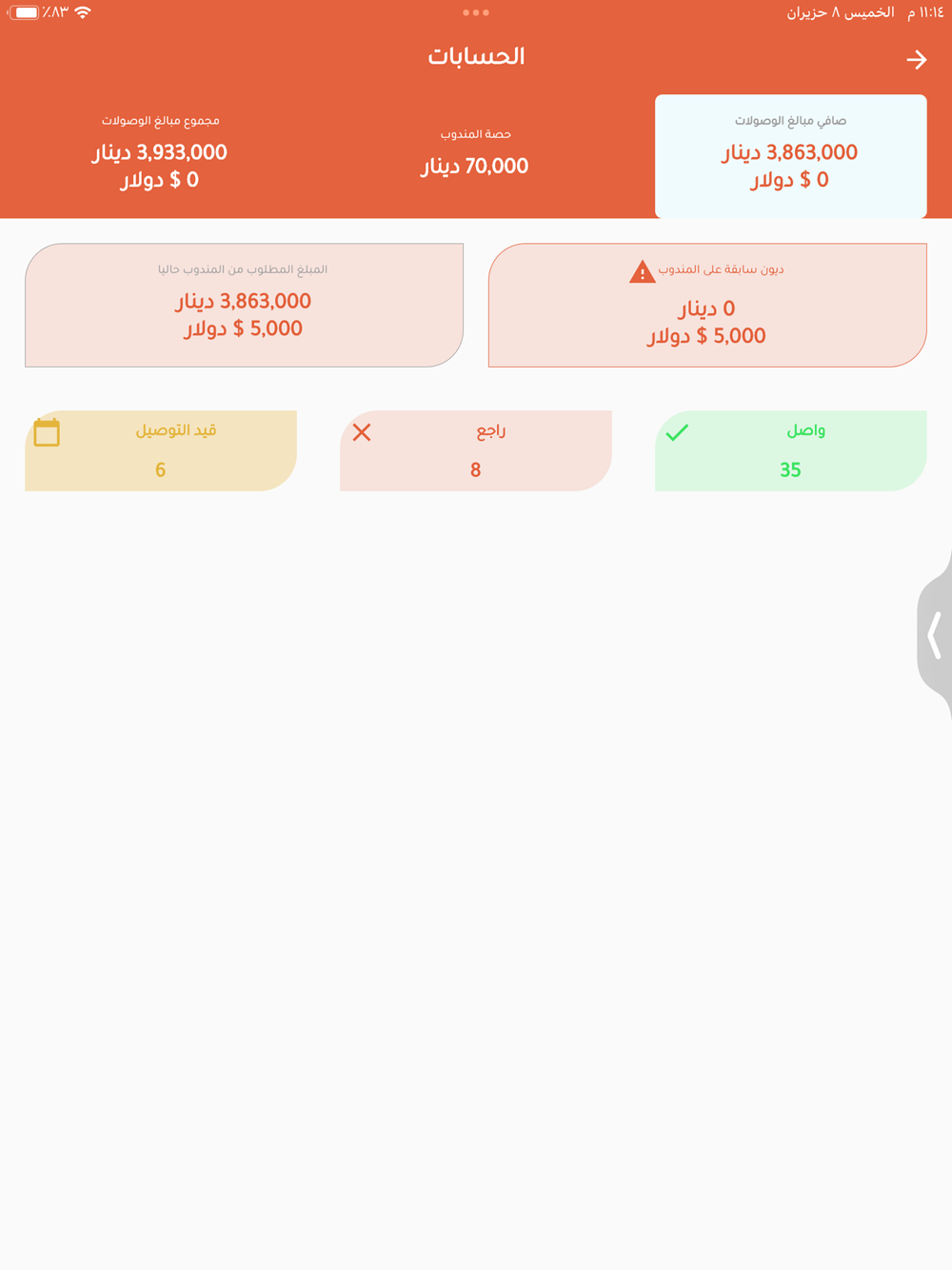 التطبيق الخاص بمندوب الريتاج للتوصيل بامكان المندوب تحديث حالة الشحنات ومتابعتها وتواصل مع الدعم الفني وبحث عن كافة الشحنات بكل سهولة من خلال التطبيق