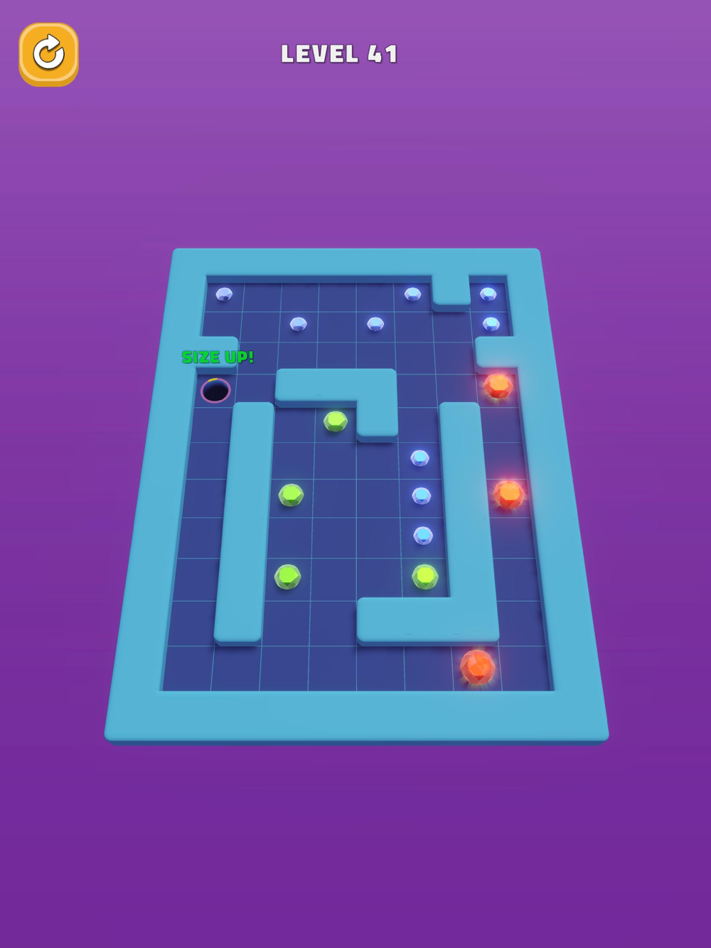 Navigate a tiny hole in a challenging environment, growing bigger by swallowing smaller gems with a swipe.