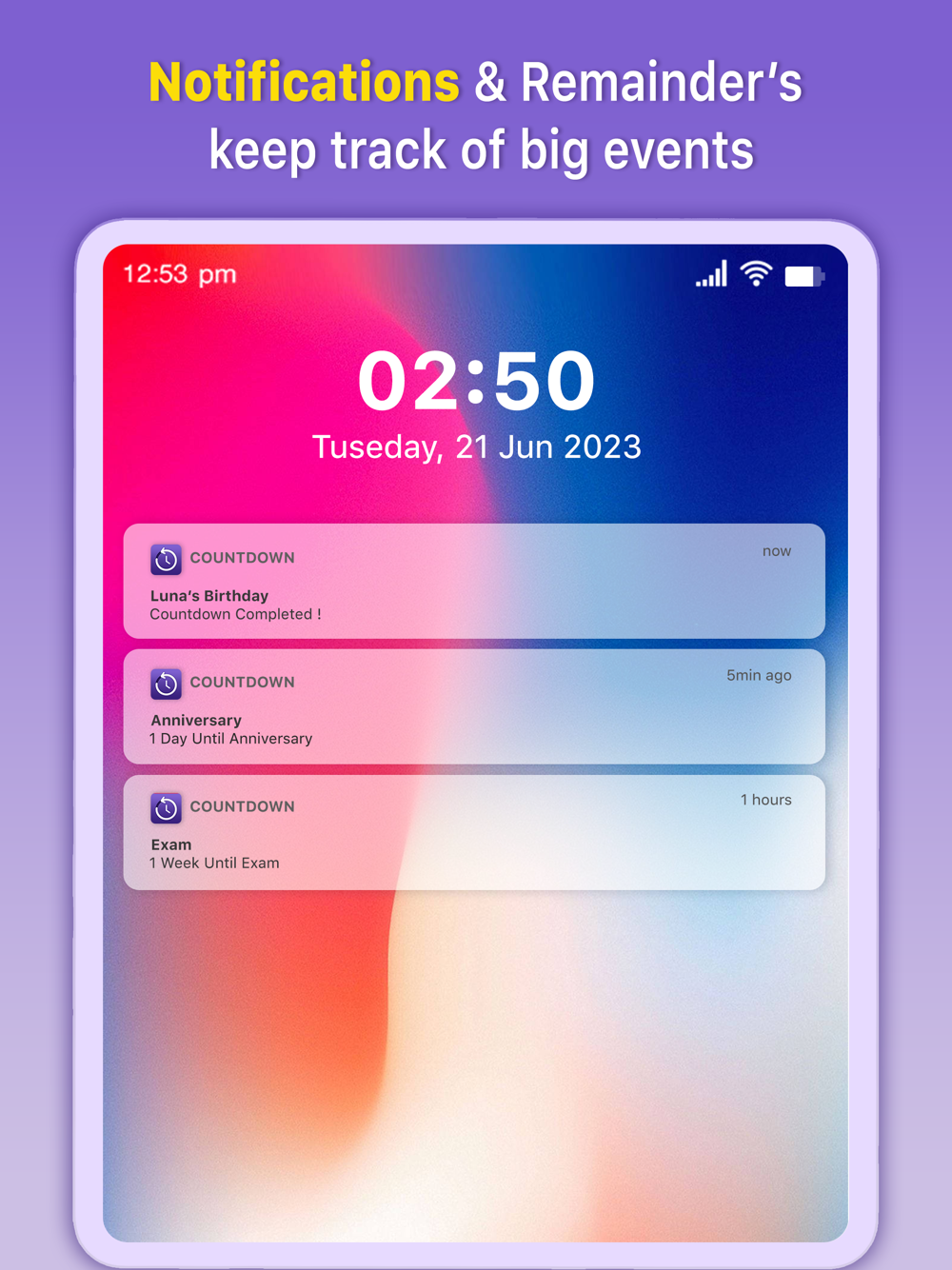 • Countdown WIDGETS place on iPhone, iPad, and Mac.