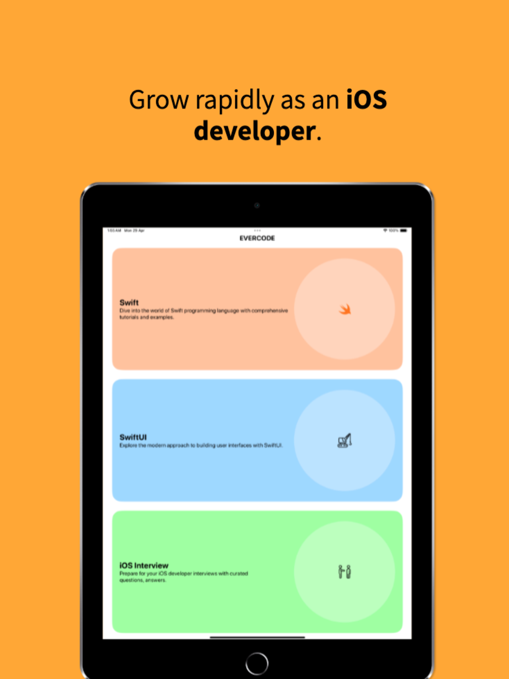 EverCode can double your productivity, as information regarding Swift, SwiftUi and iOS interview questions are put into your long term memory. No more having to constantly lookup concepts you have forgotten. In addition, if you are applying for new iOS developer jobs you can become an expert in the most common interview questions this year.