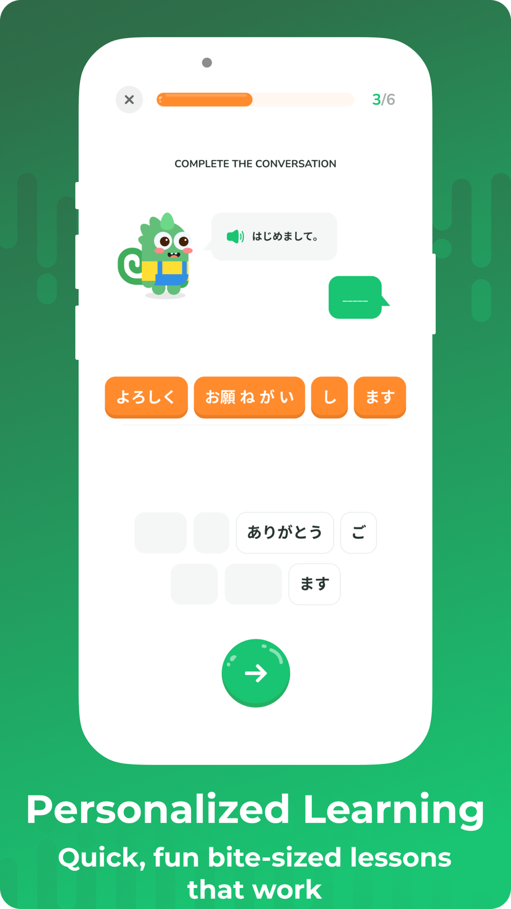 - Interactive Learning: Engage with AI, your Japanese chat companion, who helps you apply what you've learned in real conversations. Practice speaking with our conversation feature and reinforce your skills through daily exercises.