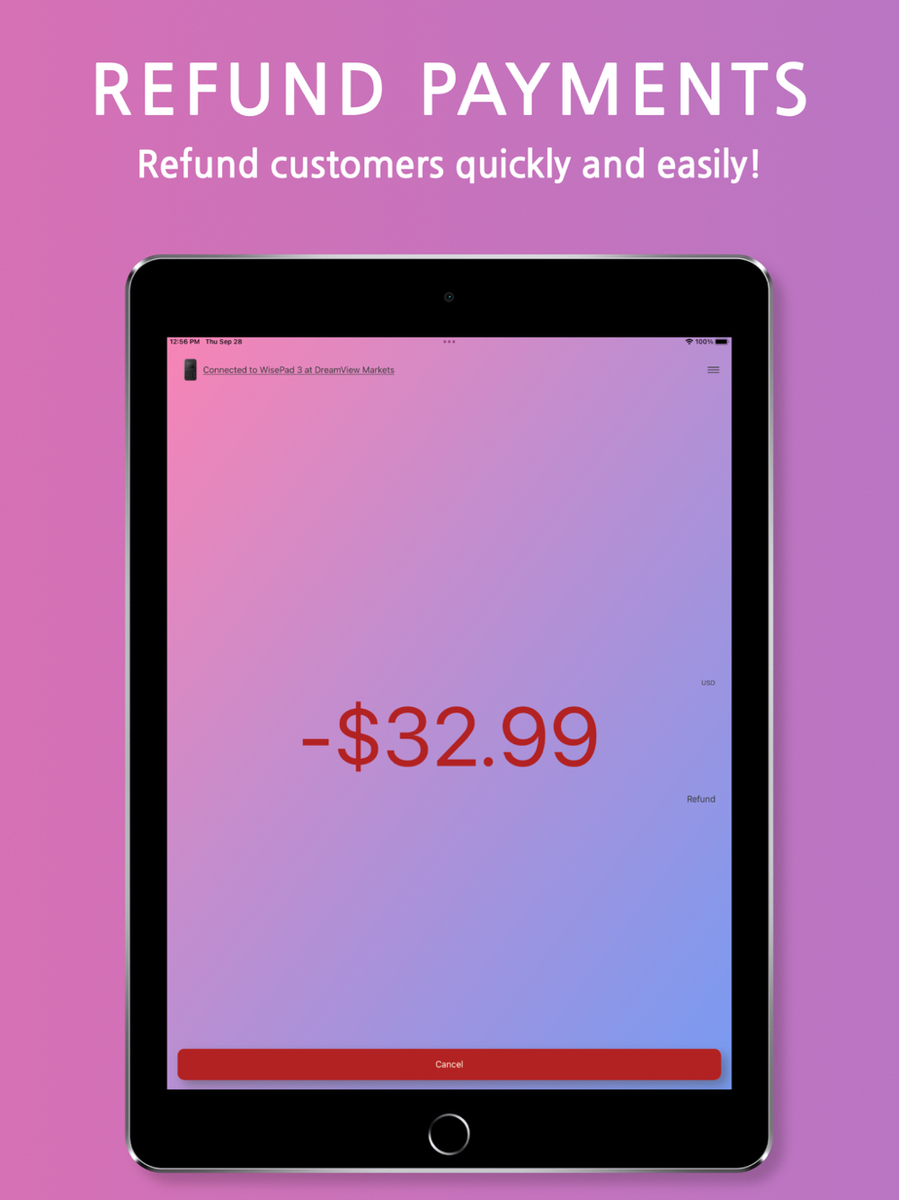 Connect to your Stripe WisePad 3 to easily make transactions in seconds!