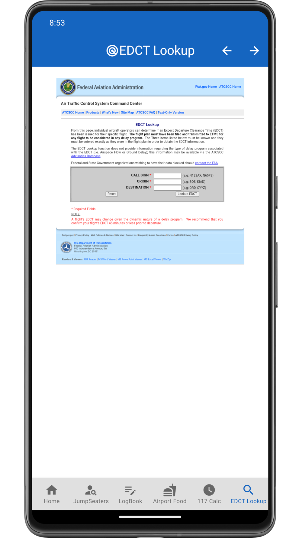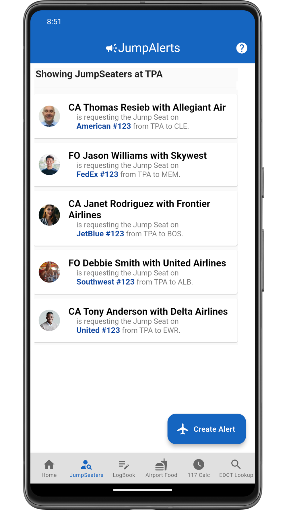 Flight Crew is an app designed exclusively for Airline Pilots and Flight Attendants. The app includes a communication tool for Jump Seating, Pilot Logbook, Airport Food Directory, 117 Calculator and EDCT lookup.