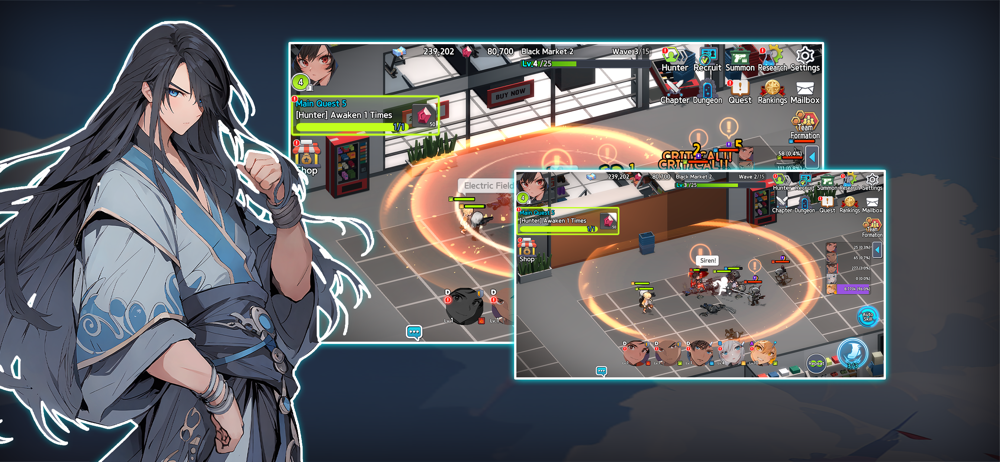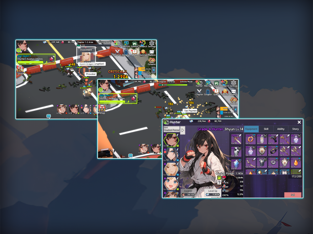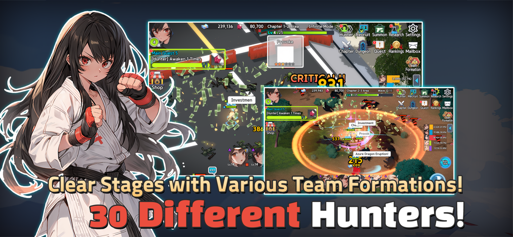 - Recruit and collect Hunters to nurture the best Hunter company!