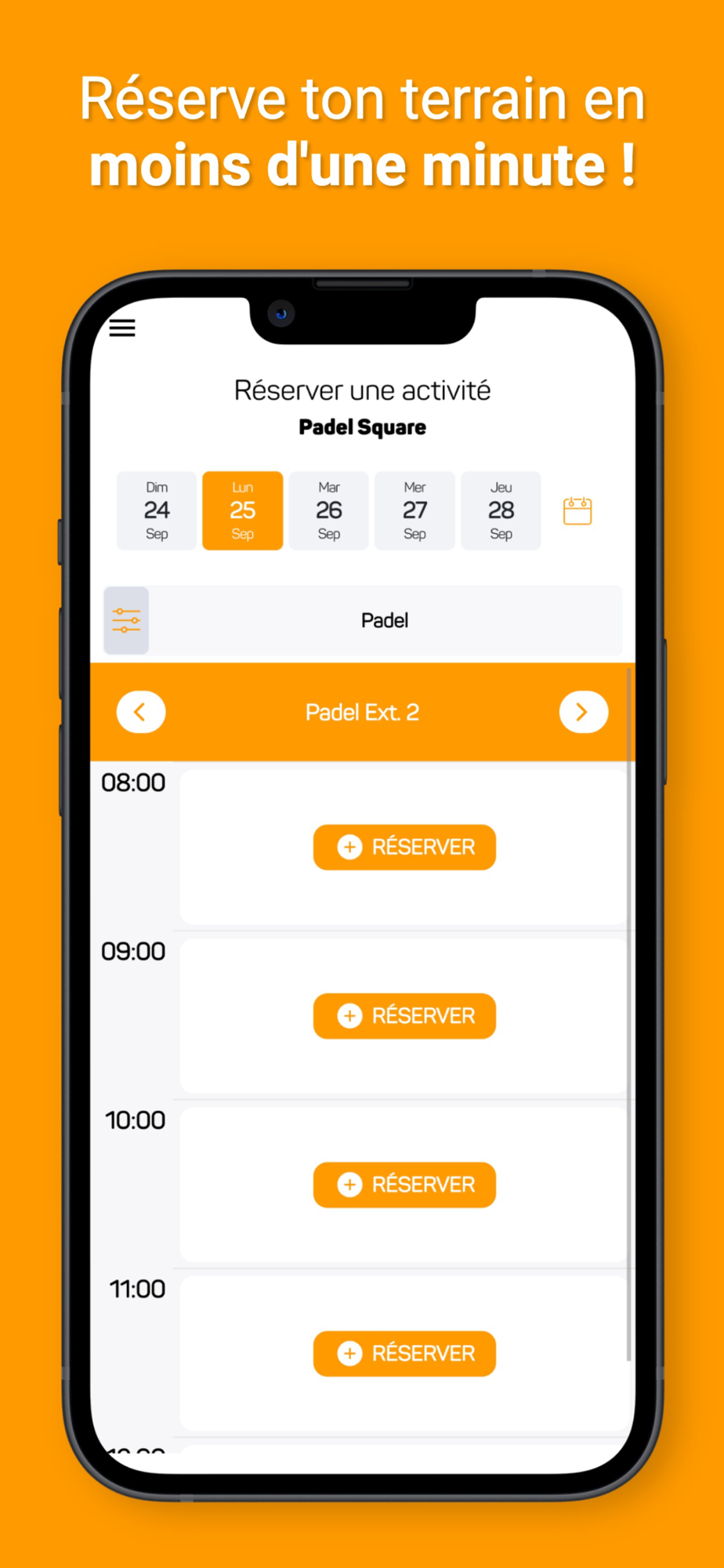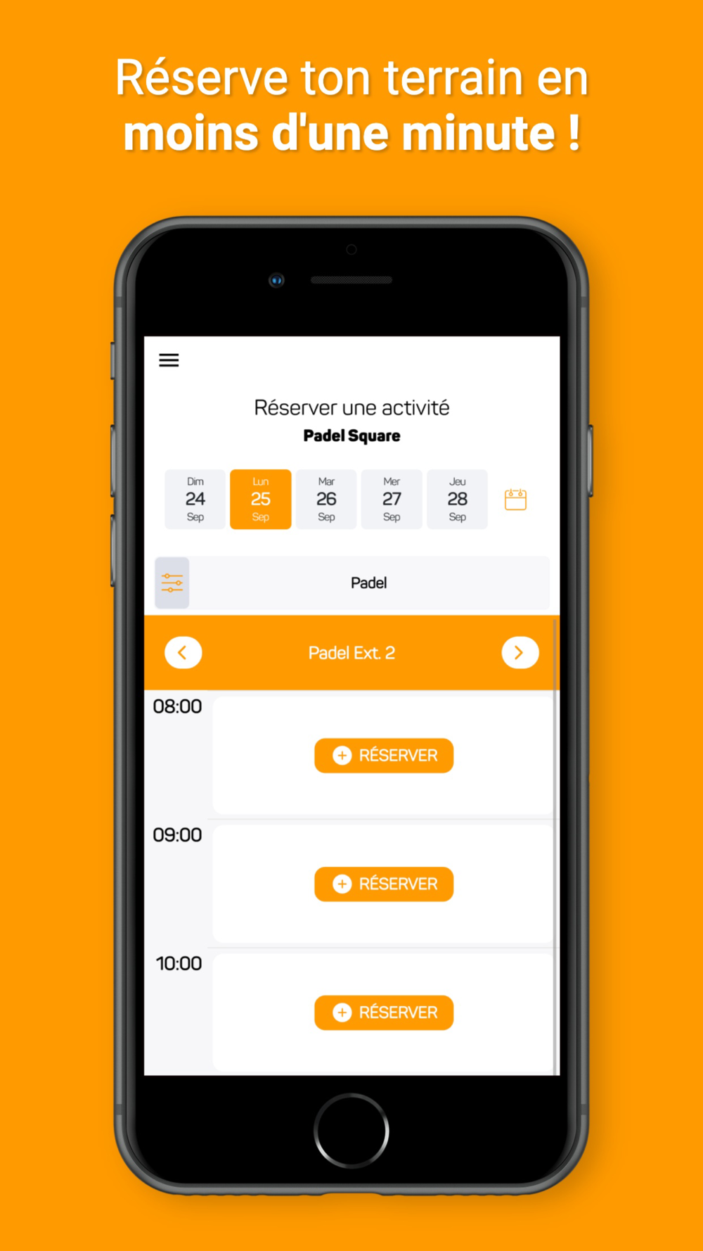 Fini la corvée de réservation ! Avec l'application tu n'as plus qu'à accéder aux créneaux disponibles et à en choisir un. Le club recevra alors automatiquement ta réservation.