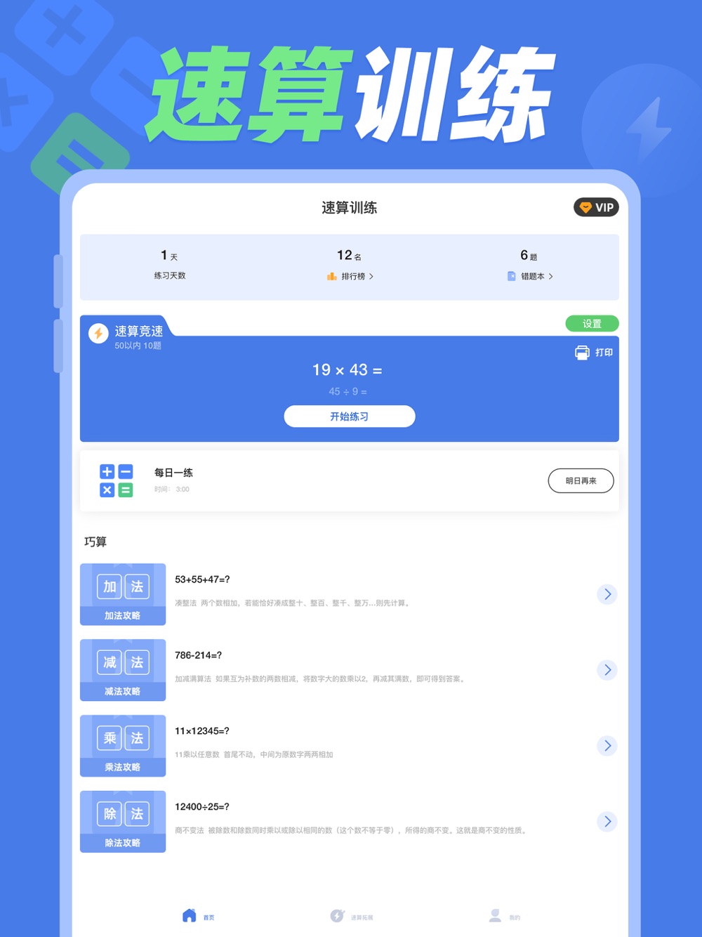 1.速算训练是一款训练数学计算能力的益智类软件。