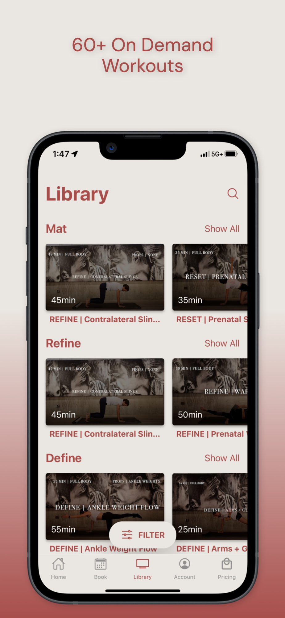 + Get unlimited access to our library of 60+ Pilates workouts