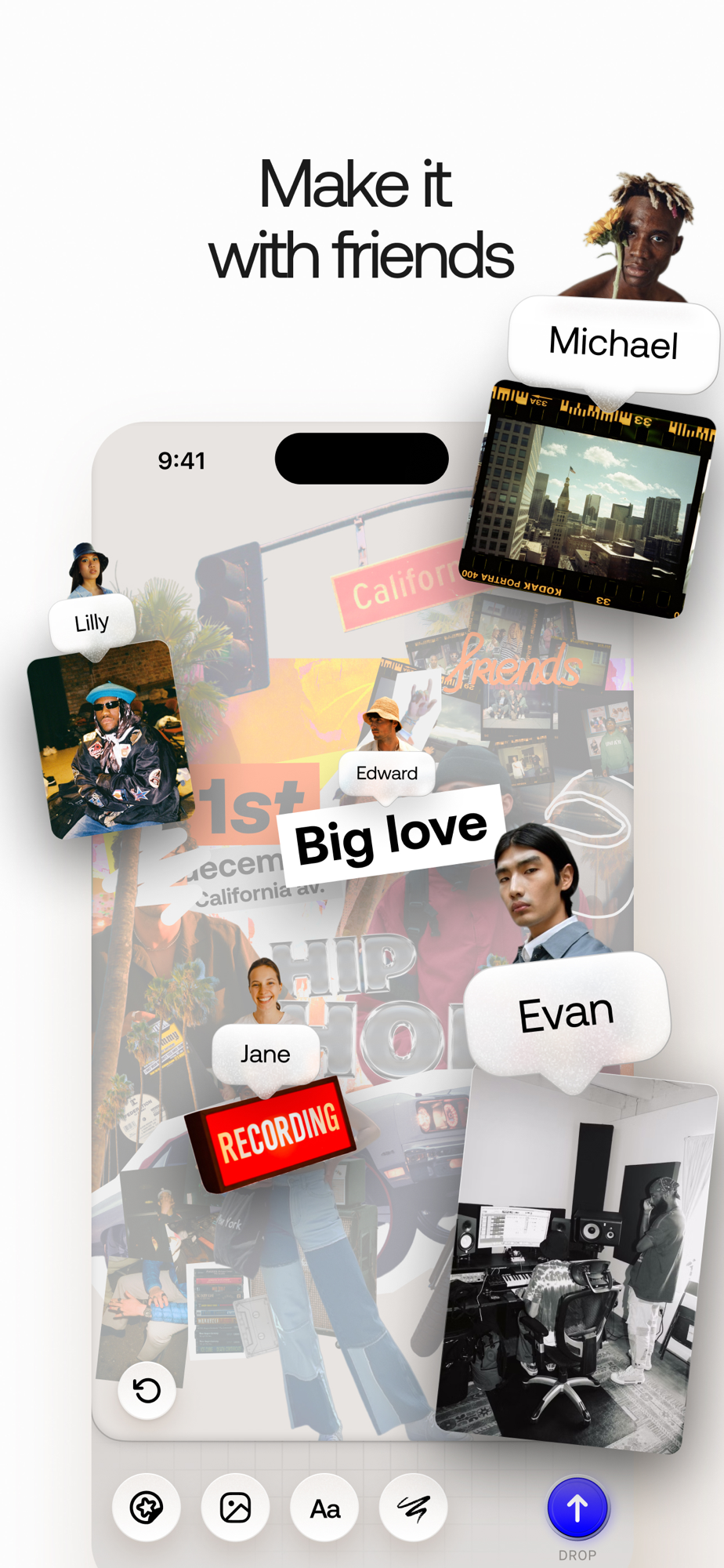 ID by amo is a new kind of social profile that you make with your friends, on a limitless board.