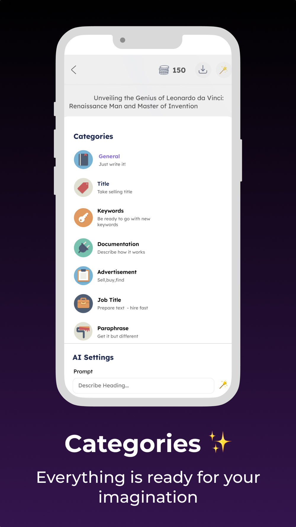 - Social Media Posts – Write good selling texts for your social media accounts.Gather optimized keywords for better SEO and ASO.