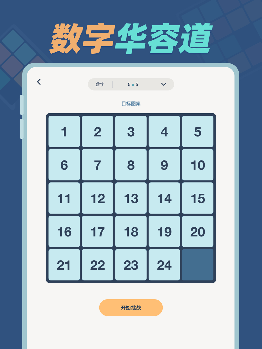 【数字华容道】设置了6个难度,通过移动数字块将打乱的数字迷盘按照从小到大排序;