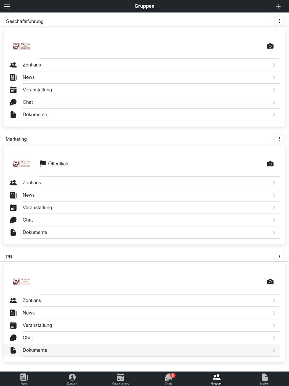 Organisieren Sie Ihren Zonta Club vollumfänglich digital: Kommunikation von Neuigkeiten und Mitgliederzeitschriften, Verwaltung aller Mitgliederdaten, Erstellung von Projektgruppen, Organisation von Veranstaltungen mit Zu- und Absagen, Einzel-, Gruppen und Organisations-Chat, Bereitstellung von Dokumenten, öffentliche Fotopinnwand und vieles mehr...