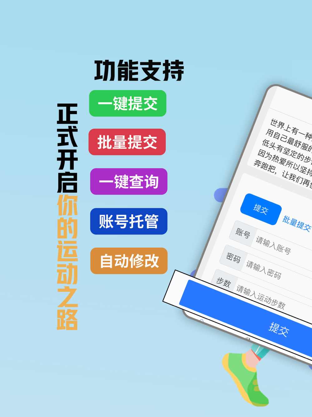 小鑫网络运动APP的主要功能有:提交运动步数,批量一键提交,全自动修改